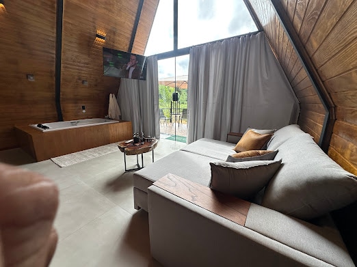No meio do verde, cercado pelo silêncio da natureza e pelo canto dos pássaros, o Chalé Dois Corações é o refúgio perfeito para quem busca descanso, conexão e momentos especiais. Aqui, o tempo desacelera. Aproveite a luz natural, o ar puro e a paisagem, em um espaço pensado para oferecer conforto, aconchego e privacidade. Ideal para momentos de descanso, romance ou uma pausa da rotina. À noite, o céu estrelado e o silêncio completam a experiência, criando o cenário perfeito para relaxar.