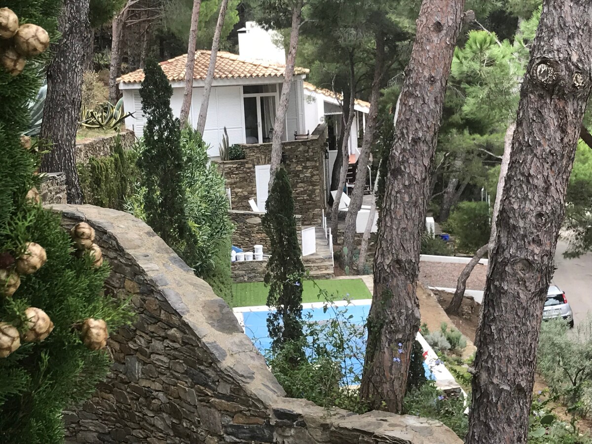 Kuća u mediteranskom stilu okrenuta prema moru na jedinstvenoj lokaciji sa spektakularnim pogledom na zaliv Roses. Okružen velikom baštom od bora , čempresa i maslina, ima unutrašnji grijani bazen i direktan pristup okruglom putu. Terakota i bijeli tonovi namještaja i dekora, prenose udobnost i nastoje da pronađu savršenu ravnotežu između jarko plavetnila mora i osjećaja utočišta.