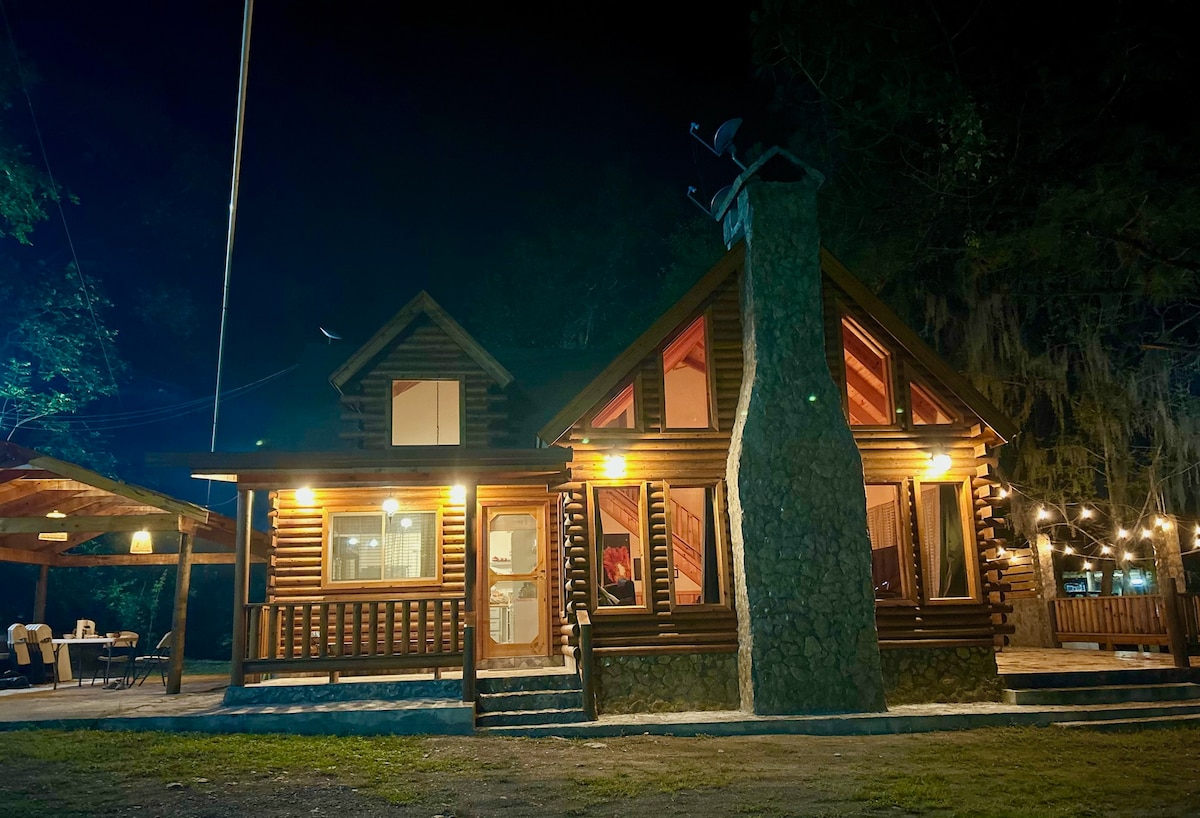 Rustikalna brvnara u Nuevo Leonu s pogledom na planine