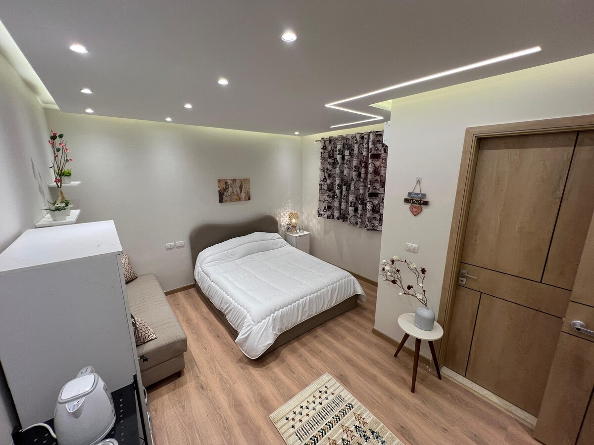 Tematske minimalističke dizajnerske sobe sa terasom i pristupom bazenu, dizajnirane i potpuno opremljene kako bi zadovoljile neke potrebe. Jedinstvena lokacija sa jasnim putevima i lakim pristupom, - Lokalna pijaca (5 min. hoda) - Autobuska stanica (5 min. hoda) - Centar / Kairo festival Grad „Mega tržni centar“ ( 10 min. hoda ) - Soudi Market i lokalni tržni centar sa 7 zvezdica. (10 min. hoda)