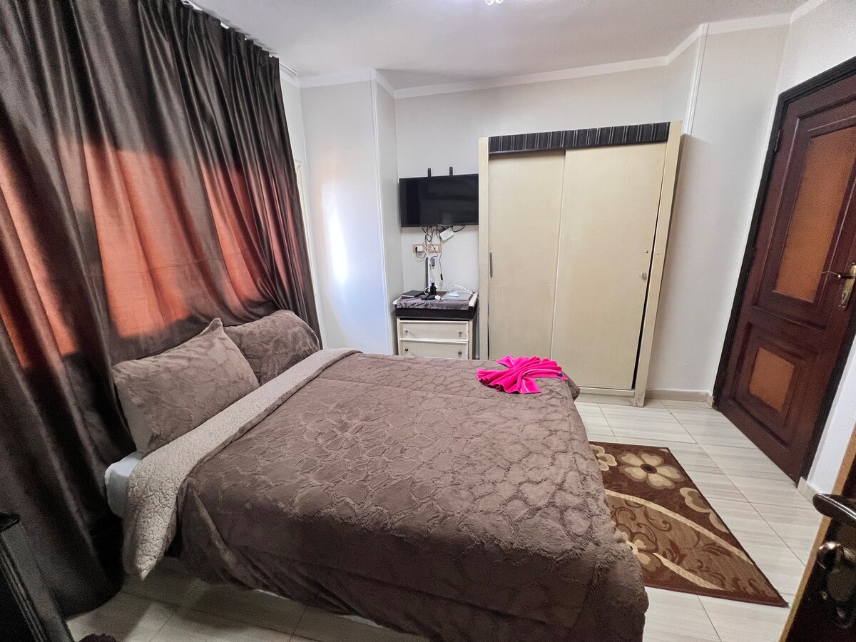 Odsjednite na samo 1,4 milje (7 minuta) od aerodroma u Kairu, sa prelijepim pogledom na aerodrom i baštu ispred kuće, bez buke aviona. Dostupno je 🚖 besplatno dovoženje sa aerodroma i pristupačan prevoz 🔑 Samostalna prijava pomoću privatnog PIN-A ⚡ Brza Wi-Fi mreža za posao ili strimovanje 🚗 Uber vam je non-stop na pragu 🥘 Samo nekoliko koraka (1–3 minute hoda) do restorana, kafića, supermarketa