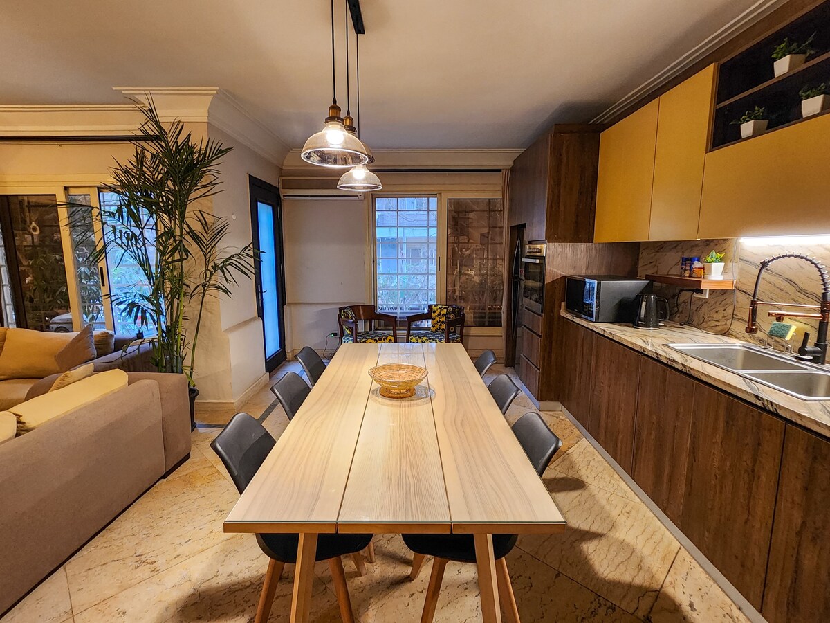 Rezervišite očaravajući odmor u ovom veličanstvenom dvosobnom dragulju ukrašenom starinskim umjetničkim djelima i blagom prikupljenim s naših svjetskih putovanja. Odsjednite na samo nekoliko koraka od glavnih muzeja, spomenika i znamenitosti Kaira dok se osjećate kao da ste uklopljeni u kulturu. Sve u prostoru je dizajnirano posebno za prostor i za vas da doživite umjetnički doživljaj. Odlično za grupe prijatelja, parove ili porodice.