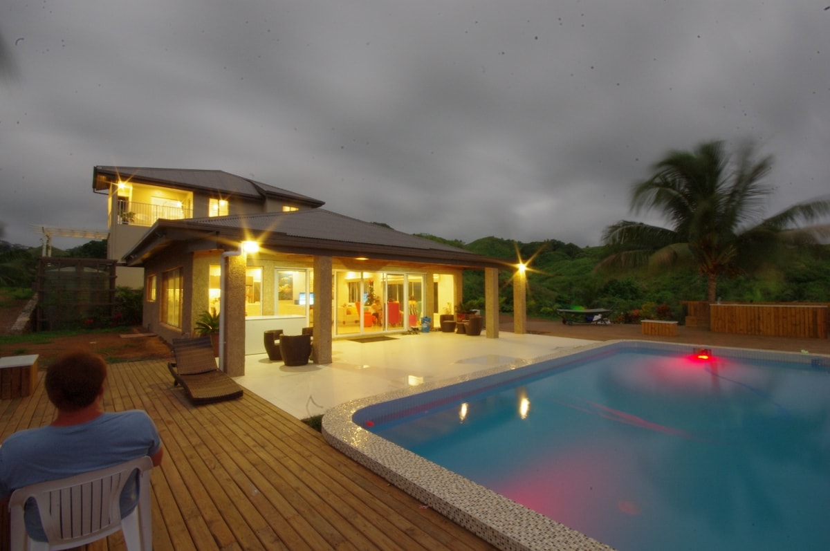 Ova jedinstvena arhitektonska tropska kuća skladno zamagljuje linije između života u zatvorenom i na otvorenom pruža zadivljujući pogled na lagunu i priobalni okean. Dnevna/kuhinjska kapsula je povezana unutrašnjim dvorištem sa baštom i bazenom sa spavaćom sobom/kupatilom. Kuća sa 2 spavaće sobe i 1 kupatilom na 2 hektara ima mnogo arhitektonskih karakteristika koje omogućavaju različite mogućnosti stanovanja. Ronjenje s maskom i disalicom pravo ispred u laguni i u blizini vrhunskog ronjenja i avantura.