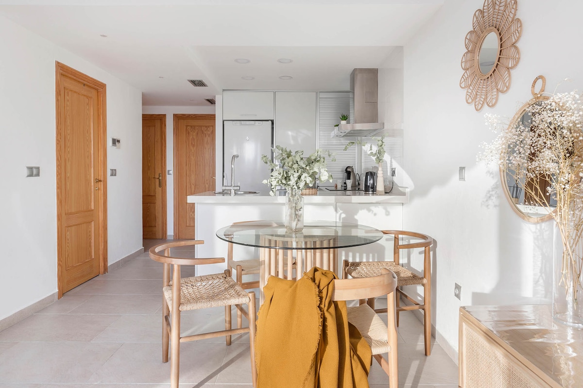 Prekrasan stan u predivnoj urbanizaciji, 10 minuta hoda od plaže San Huan. Urb. sa bazenom , igralištem i barom. 2 spavaće sobe , jedna sa bračnim krevetom i bračnim krevetom, ormar u obe sobe. 1 kupatilo. Kuhinja sa rernom , mikrotalasnom rernom, tosterom , blenderom, mašinom za veš, frižiderom i kućnim potrep Klima-uređaj sa hladnoćom i grijanjem. Putni krevetac i stolica za bebe. Tu je i materijal za plažu (kišobran , naočare , peraje i cevi za odrasle i decu)
