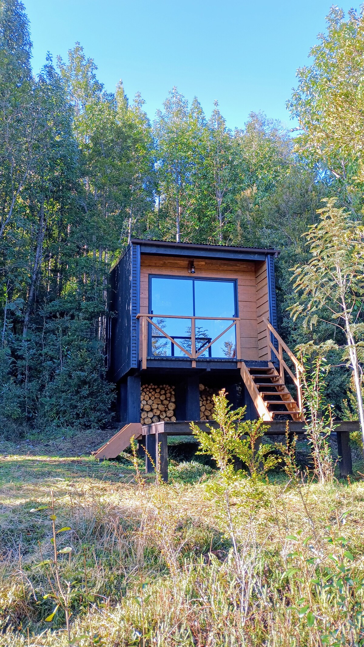 Predivna NOVA brvnara, novoizgrađena za porodicu, studio tipa, sa pogledom na okean i samo nekoliko koraka od plaže, nalazi se na adresi Carretera Austral Km 27.5 Sector Metri. Gateway to Patagonia, 25 minutes from downtown Puerto Montt and 15 minutes from Parque Alerce Andino. Pristup plaži pogodan za kupanje i ribolov. Brvnara je namještena za 2 osobe. Ima 1 kupatilo, dnevni boravak, trpezariju, spavaću sobu, kauč na razvlačenje i integrisanu kuhinju u jedinstvenom i toplom okruženju