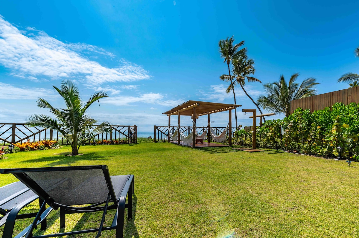 Villa Araçás é um refúgio boutique a 100m da praia, na Praia dos Arandis, Península de Maraú. Cercada por jardim tropical amplo e privativo, oferece conforto e experiência autêntica de praia. A casa principal possui 3 suítes, sendo 1 suíte master ampla, com banheira e varanda. Há ainda uma 4ª suíte de apoio, mais compacta. No terreno existem 2 chalés independentes com suíte, em área separada da casa principal, garantindo privacidade. Cozinha completa, churrasqueira, redário e wi-fi.