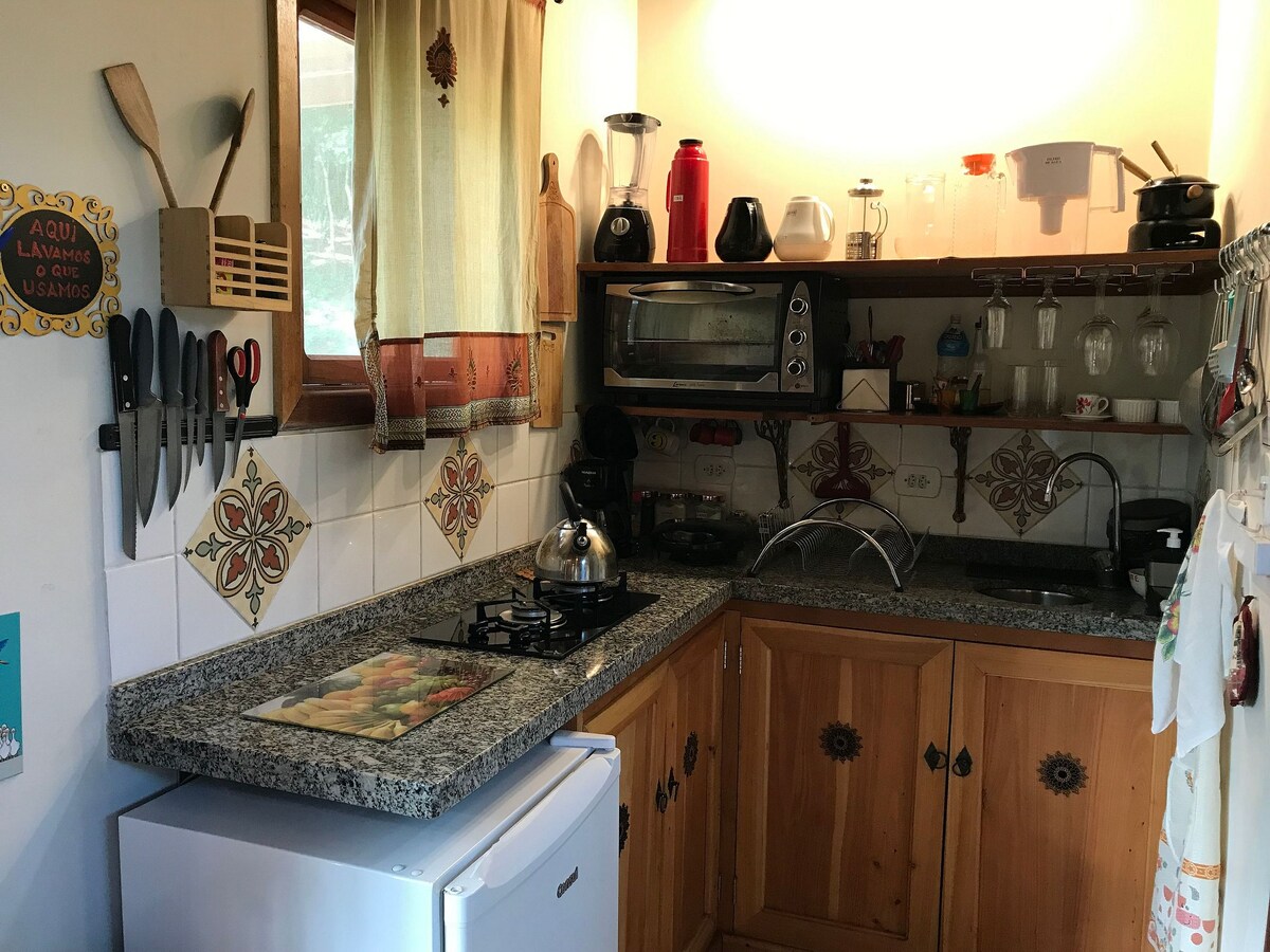 Dobro došli u Chalé Sol! ☀️ Rustikalno, intimno i svijetlo utočište sa đakuzijem, idealno za parove koji traže mir i očaranost. Nekoliko koraka od centra Monte Verdea, ali okružen šumom. 100 MB interneta, klima-uređaj za grejanje i hlađenje, Smart TV sa Netflix-om, Nespresso aparat za kafu i mini-bar. Balkon s pogledom na prirodu. Zajednička bašta i bezbedan parking. Posteljina i kupatilo. Samostalna prijava/okt. Spoljna bezbjednosna kamera. ✨