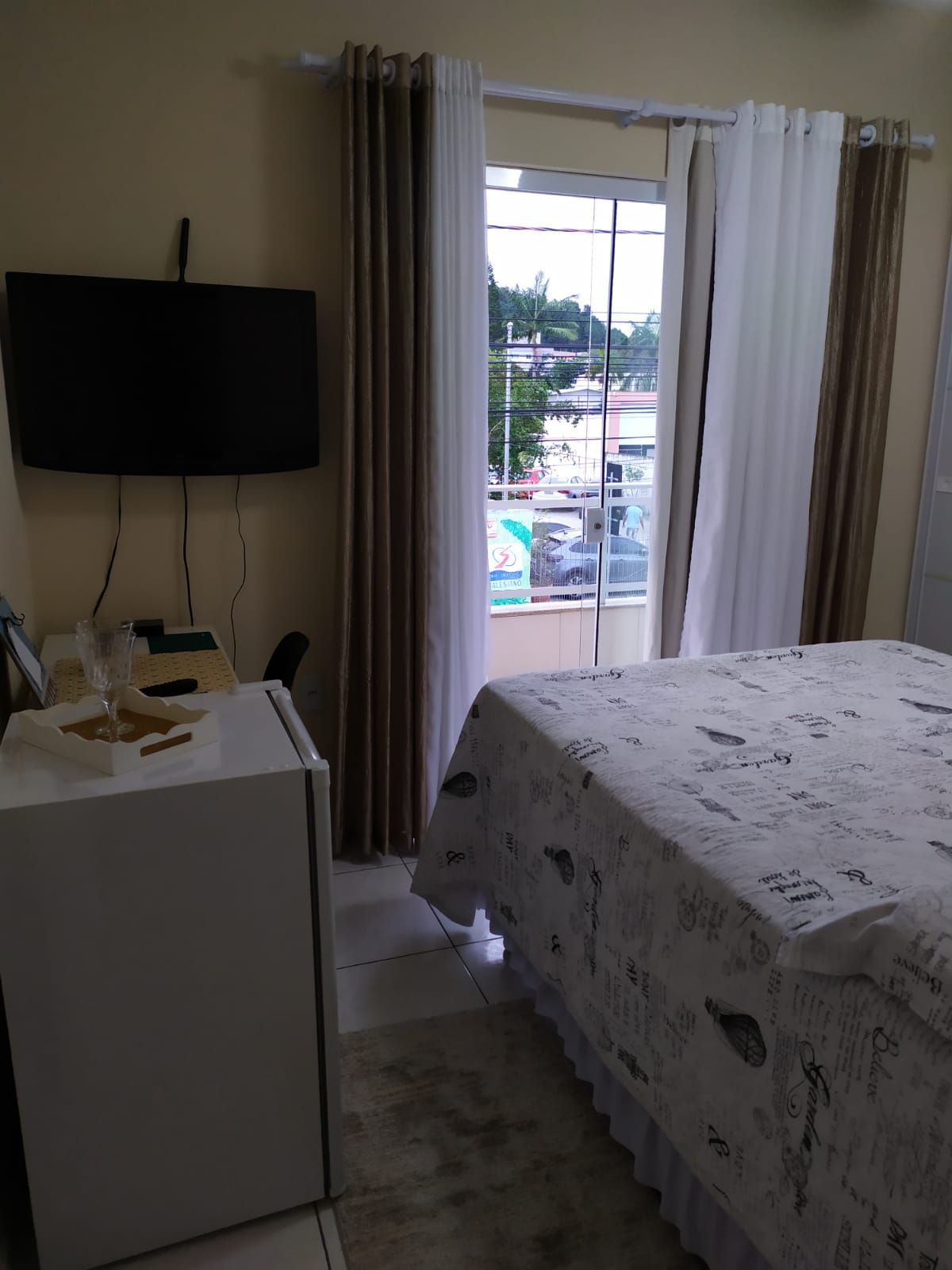 DISPONIBILIZAMOS GRATUITAMENTE - Wi-fi - Ar cond -Smart Tv - microondas - Forno elétrico - Cozinha completa todos utensílios - Roupa de cama travesseiros, cobertas, lencóis - Estacionamento Próprio -Câmeras de monitoramento externas COBRADO A PARTE Toalha de banho Disponível 3 tipos de café da manhã. Consultar valores conosco. Acomoda até 4 pessoas, mas não recomendado para crianças e bebês, pois está no 1º andar.Valores variam conforme quantidade de pessoas
