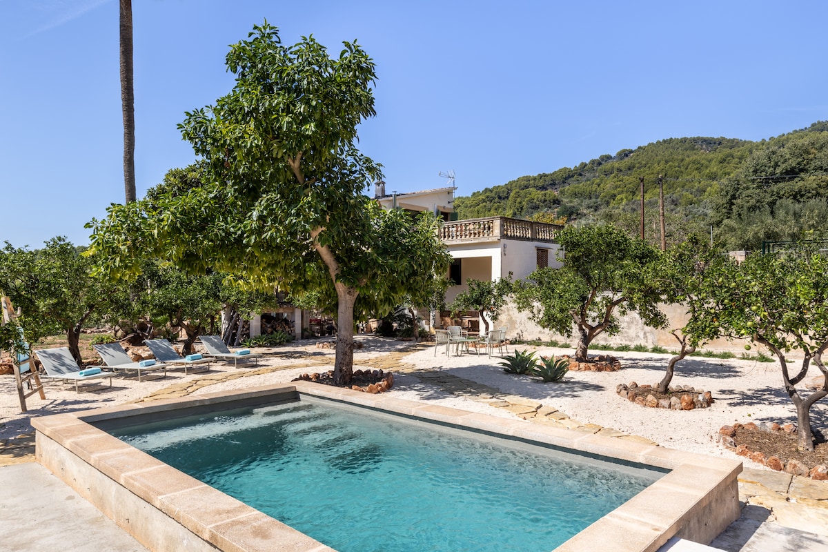 Surrounded by orange and lemon trees, this cosy house in Binibassi is the perfect refuge for families or groups of friends. With capacity for 8 people, it offers 4 bedrooms, 2 complete bathrooms, a fully equipped kitchen and a bright living room with fireplace, heating and air conditioning.<br><br>The spacious garden with terrace and private pool invites you to relax and enjoy the natural surroundings of the Serra de Tramuntana. The property also has a barbecue and private parking for two cars.