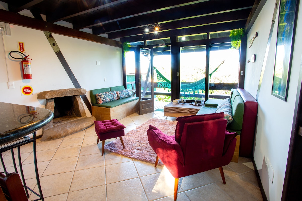 Otkrijte raj u šoljama na drvetu - bungalov sa pogledom na more! Uživajte u jedinstvenom boravku u našem bungalovu u stilu kućice na drvetu sa kaminom, roštiljem i predivnim pogledom na okean. Može da primi 3 osobe u mirnoj, porodičnoj ulici 5 km od Lagoa da Conceição i 5 km Campeche Central. Važno: Nije dostupno osobama sa invaliditetom ili starijim osobama. Dozvoljena su deca od 10 godina. Rezervišite sada i uživajte u prirodi u celosti!