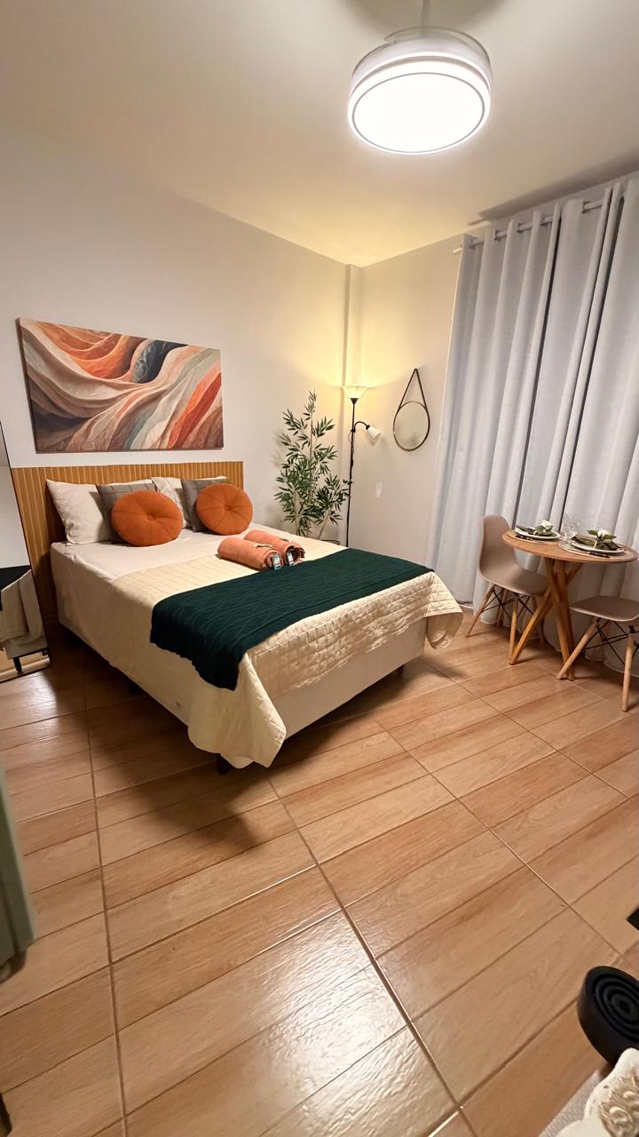 Aconchegante jednosoban stan, dnevni boravak i kuhinja, na 20. spratu, sa svim sadržajima, za posao, učenje ili slobodno vrijeme; sa Wi-Fi mrežom, kablovskom televizijom i DVD plejerom; bazenom, saunom, teretanom i prostorija za zabave na krovu; kongresna sala; 24-satna recepcija; plaćeni parking u podrumu; kolektiv za pranje veša sa žetonima. Nalazi se pored bolnice Vera Kruz, na pet minuta od autobuske stanice, opštinske pijace i glavnih trgovačkih ulica; 15 minuta od Virakoposa.
