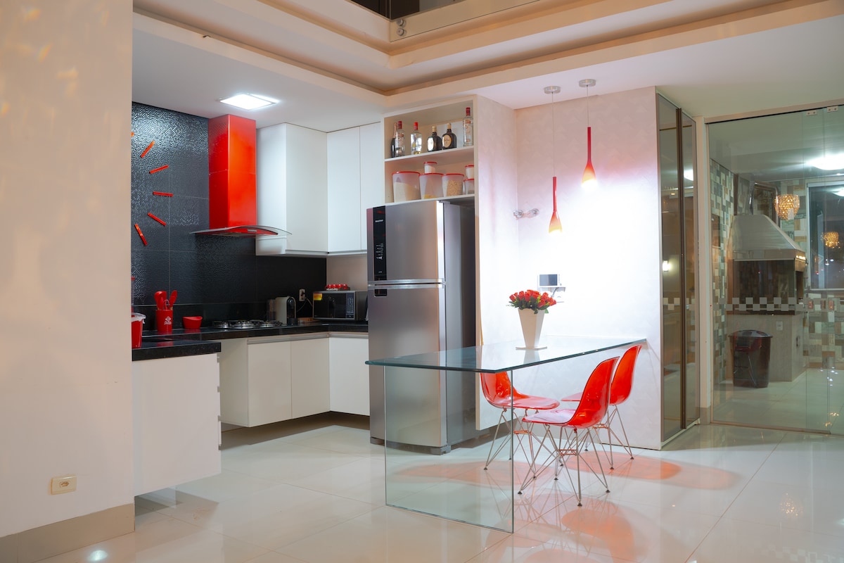 Apto Sofisticado - potpuno nov (isporučen u novembru 2024.) Dizajn visokog standarda Privilegovana lokacija: bezbjedno okruženje, sljedeće centar grada i prodavnice. Šta ćete pronaći: Spavaća soba: Bračni krevet (širine 150-179 cm) s pamučnom posteljinom, za najviše 2 osobe, toplim i hladnim vazduhom i klupom za učenje. TV soba: TV Smart 50”. Kuhinja je kompletna: kućni aparati i pribor. Veš: rezervoar za odjeću Garaža: Odmor zbog bezbjednosti. Idealno za one koji traže udobnost i spokoj.