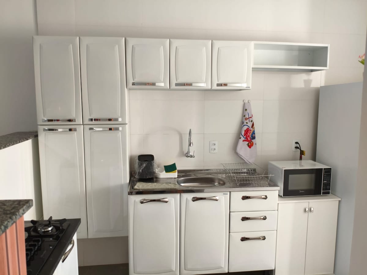 Apartamento novo localizado na região central de Campo Verde. próximo a mercados, farmácias, restaurantes, ... (1 quadra de distância). Equipado com todos os utensílios e móveis necessários para uma excelente estadia. São dois quartos: Um quarto com uma cama de casal e outro quarto com beliche, os dois quartos com ar-condicionado. Roupas de cama e toalhas disponível para os hospedes. Garagem coberta disponível (1 por apartamento). PROIBIDO ANIMAIS!
