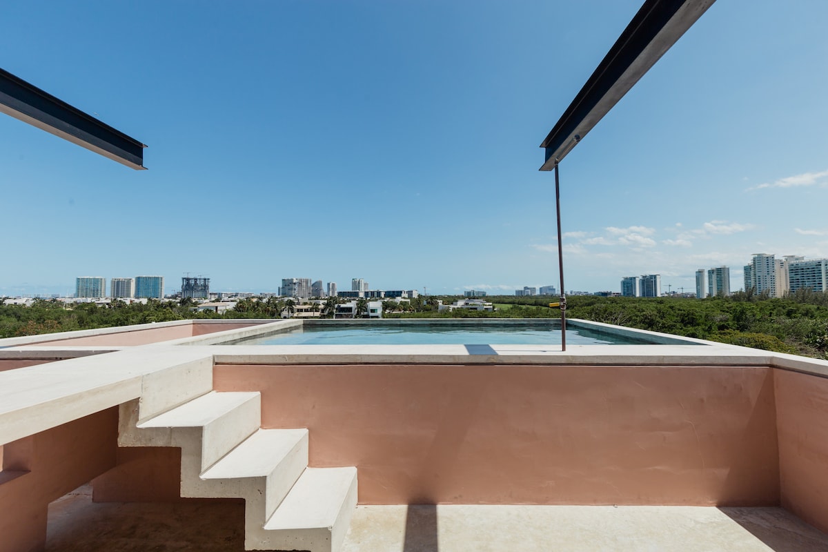 Uživajte u elegantnom iskustvu u ovom smeštaju koji se nalazi u centru grada. Zaista neverovatna lokacija, 5 minuta vožnje od plaže, ali u srcu Kankuna, gde je sve što vam je potrebno na pješačkoj udaljenosti. Nema potrebe za iznajmljivanjem automobila! Dizajniran sa mnogo pažnje i beskrajne noći razmišljajući o tome šta svi tražimo tokom dana - brzi internet, snažna klima-uređaj, udobni kreveti, odličan pritisak u tuš kabini,dovoljno prostora za opuštanje i potpuno opremljenu kuhinju.