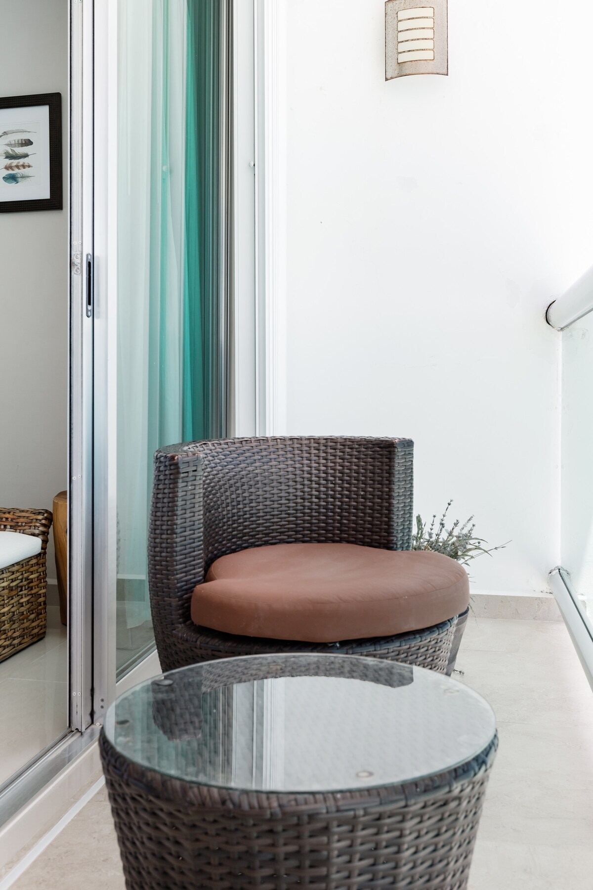 Studio 2506 – Udobnost na visokom spratu s pogledom na zalazak sunca. Uživajte u privatnom balkonu, udobnom kutku, čistom bijelom dizajnu, brzom Wi-Fi-ju, Smart TV-u i posebnoj kafi. Nalazi se u centru zgrade sa tihim i prirodnim svjetlom. Stepenice do plaže, bazena i restorana. Započnite dan s povjetarcem i završite ga sa zalaskom sunca.