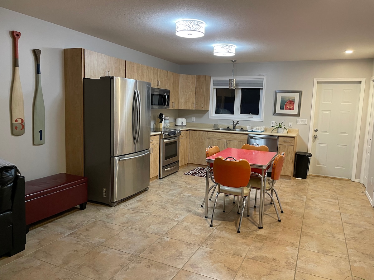 Pobjegnite u ovu mirnu brvnaru na jezeru Ema u Švajcarskoj. Smješten na drveću ograđene zajednice koja ima sopstveno jezero koje je napravio čovjek, ovo prijatno utočište ima sve. Nalazi se u centru grada, idealna je baza za istraživanje ljepota okolnih područja: Neis, Sunset i Sunnyside Beach i CO-OP Supermarket i prodavnica alkoholnih pića. Opustite se pored ognjišta pod zvijezdama ili se udobno smjestite u zatvorenom prostoru pored privlačnog kamina. Bez obzira na to da li tražite opuštanje ili avanturu, ova brvnara je vaš drugi dom.