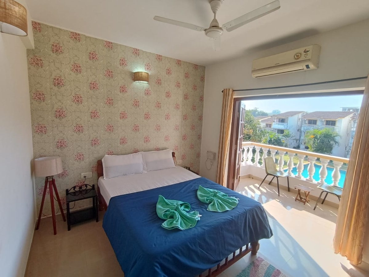1BHK Stan s pogledom na bazen - 2 min Candolim Beach !