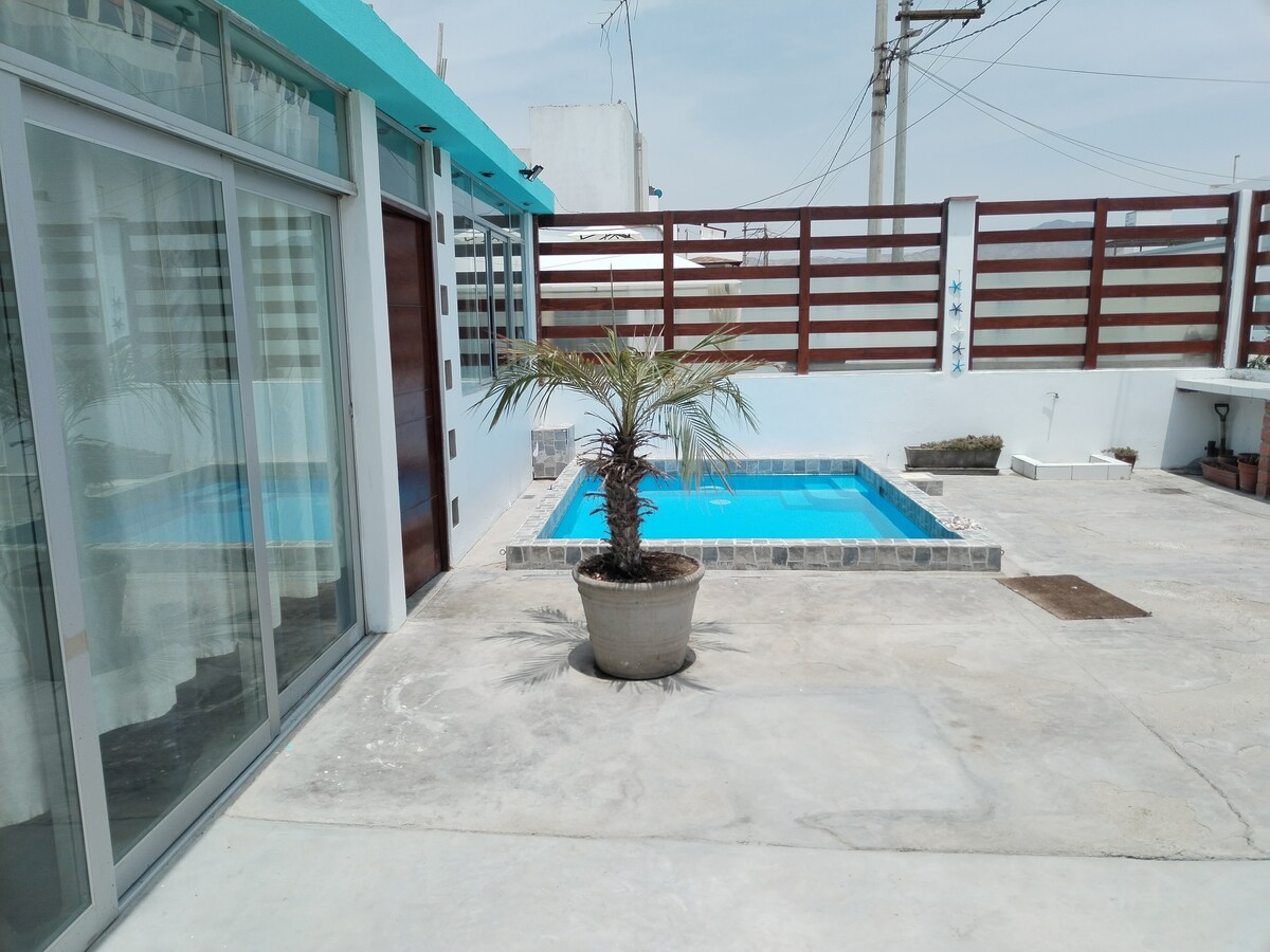 Condominio Alto Mar (playa lo Reyes) piscina,mar, sol! relájate con toda la familia en este tranquilo lugar cerca al mar para descansar,el chalet con entrada independiente cuenta con todas las comodidades TV,Refri,cable etc ,el área de parrilla cuenta con frío bar y pequeña cocina eléctrica .El condominio cuenta con alumbrado público(luz del Sur), agua y cisterna , tanque para su comodidad en su estadía.