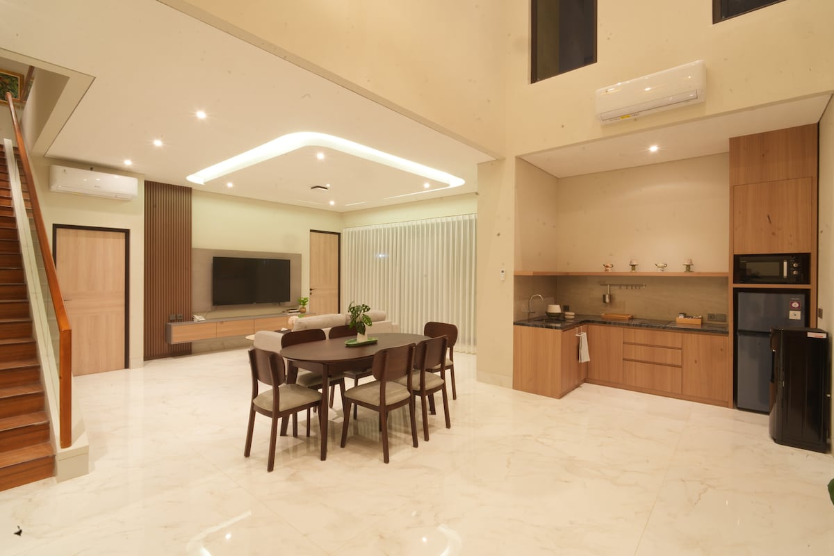 Nevjerovatan pogled na Merapi i pogled na grad sa vašeg praga. Jednostavan pristup PRIVATNOM krovu na otvorenom! Vrlo blizu Univerziteta Gajah Mada (UGM). 5 minuta do RSUP Dr. Sardjito. 15 minuta vožnje do ulice Malioboro 10 minuta vožnje do tržnog centra Hartono & Jogja City. 40 minuta do hrama Borobudur iKaliuranga. Lokacija vam je veoma pogodna za diplomiranje u UGM-u, posetu članu porodice, poslovnom putovanju i odmoru. Klima-uređaj je na raspolaganju u svim spavaćim sobama. Potpuno opremljena kuhinja radi lakšeg snalaženja