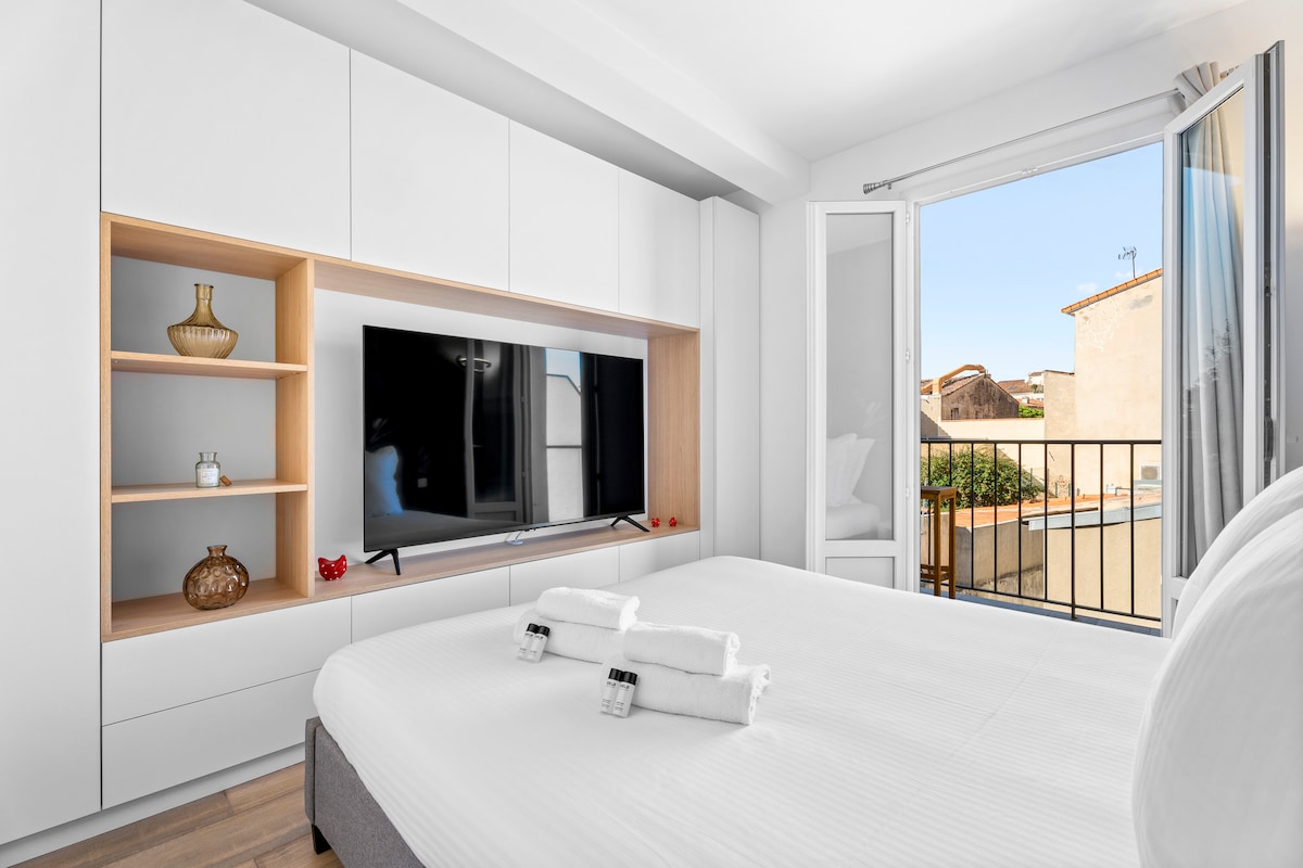 Predivan smještaj sa 2 spavaće sobe i 1 kupatilom (i odvojenim toaletom) sa direktnim pogledom na more, plažu i planinu. Sa svim modernim sadržajima (klima uređaj, Wi-Fi, Apple TV...) i prelepom dekoracijom, ovaj objekat ima sve: dobro opremljenu kuhinju (mašina za pranje veša i odvojena mašina za sušenje veša), veliki dnevni boravak, odličnu trpezariju. Posteljina i peškiri su obezbijeđeni sa kozmetičkim artiklima za uzorkovanje. Nalazi se u srcu starog grada Antiba, u blizini željezničke stanice, autobusa i provansalske pijace!