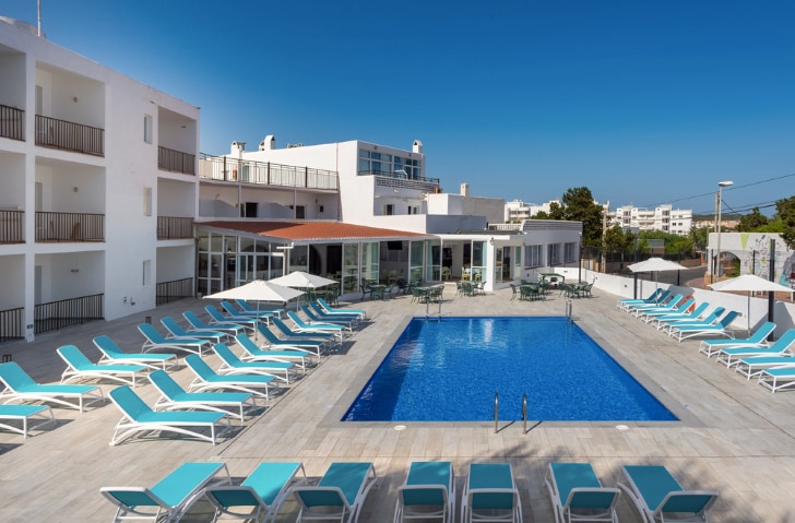 Consell Ibiza Licence Number: H0052E - Position: San Antonio bay - 40 m² apt - 2 outdoor pools and gym - Kitchen with fridge, microwave and coffee machine. Bathroom includes toiletries, hairdryer, bathrobe - Free WiFi, Sat TV, Safe, Air conditioning - 2 Twin Beds + 1 Sofa bed (available only for children, not for adults, upon request) - Balcony, garden view Pititour PROPERTY CODE: CNSLA (-up to 15%)