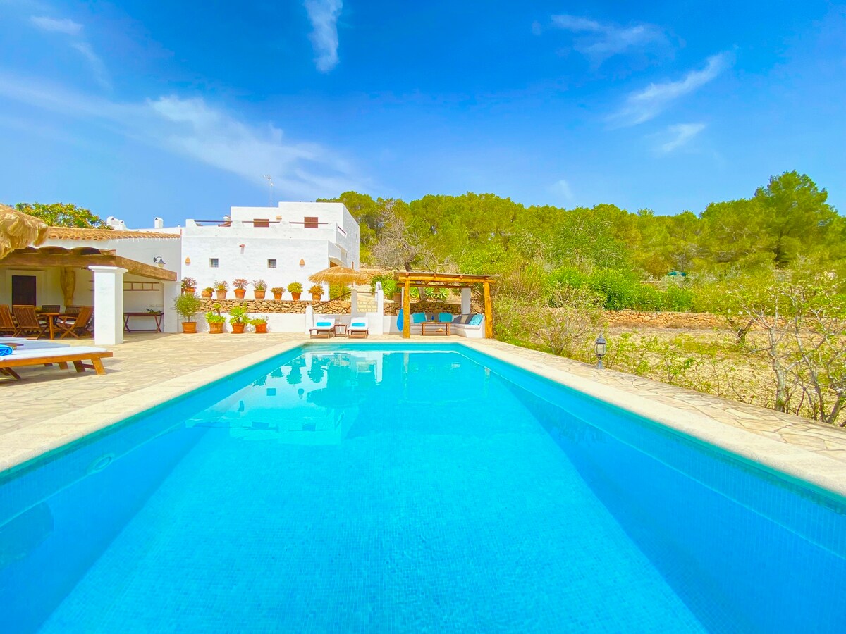 Najbolje mjesto da doživite pravu Ibicu! Ova finka je skriveni dragulj, ali na super centralnoj lokaciji! Privatna i prostrana gostinjska kuća, imate prekrasan pogled od 360° od izlaska do zalaska sunca, sa smještajem od 125 m², za 6 osoba i spoljnim prostorom od 4 hektara, uključujući bazen sa slanom vodom, đakuzi, teretanu na otvorenom i terasu za jogu, prostor za roštilj, bar pored bazena i dječje igralište. Životinje i voćke. U blizini mnogih poznatih popularnih mjesta, najljepših plaža i najboljih restorana!