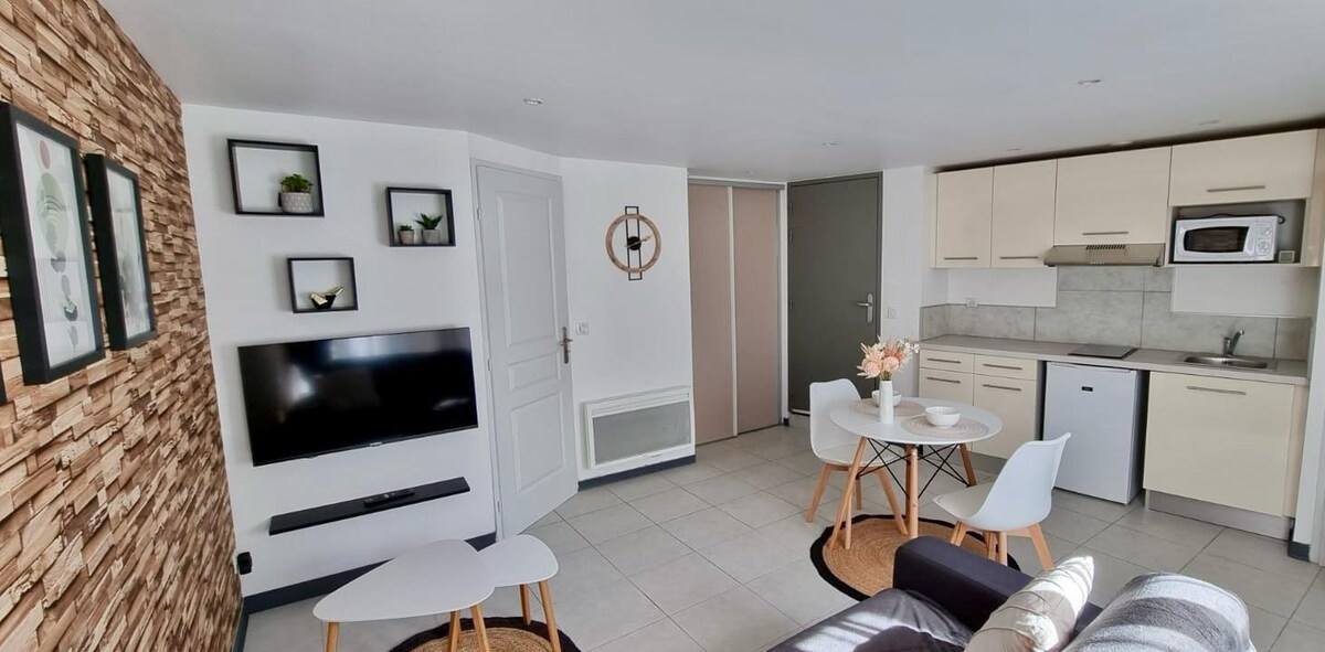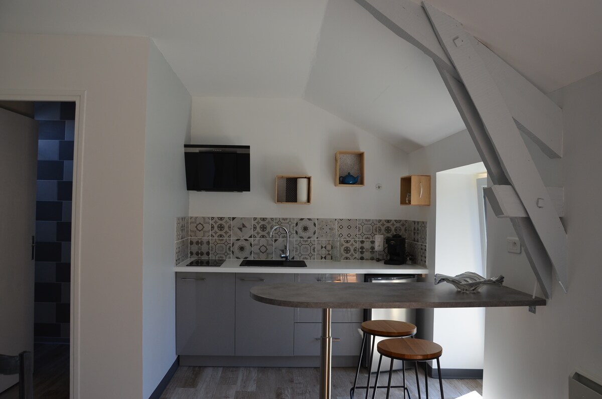 MIREPOISES – NEOBIČNO MESTO ZA ODMOR Udoban studio od 19 m², potpuno opremljen, nalazi se u prizemlju u mirnoj ulici u centru Figeaka. 4 minuta hoda do muzeja i trga Šampoljon. Besplatan parking i autobuska stajališta (besplatno) udaljena 2 minuta. Renoviranje: - Glavna soba sa garderobom-krevetom, radnim stolom, TV prostorom i opremljenom kuhinjom. - Tuš kabina sa WC šoljom. - besplatan Wi-Fi – Vešernica je dostupna u zajedničkim prostorijama