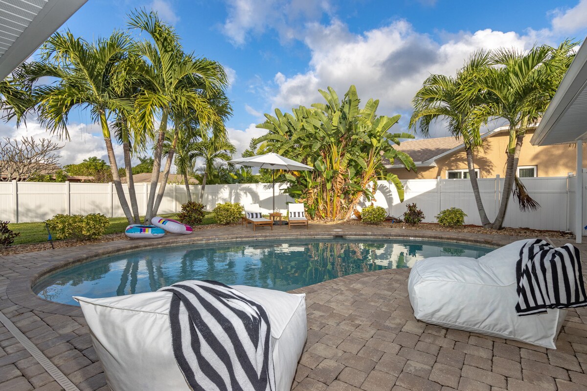 Dobro došli u svoju kuću za odmor iz snova na sunčanoj Floridi! Ovo luksuzno utočište nudi prostranu 4BR/3BA vilu uz obalu Kejp Korala za 8 osoba sa privatnim bazenom, hidromasažnom kadom, profesionalnom kuhinjom, besplatnim parkingom, pravilima prikladnim za kućne ljubimce i pouzdanom Wi-Fi mrežom savršenom za porodice, parove, poslovne putnike i osobe koje rade na daljinu. Casa del Lago je luksuzni smještaj uz obalu namijenjen onima koji traže opuštanje i uživanje.