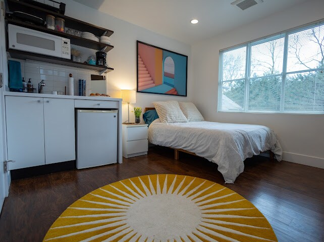 Nazovite ovaj prelijepi studio u Kapitol Hilu svojim domom tokom boravka u Sijetlu. Smješten u mirnijoj stambenoj ulici između Brodveja, Volonterskog parka i butika na 15. ulici, ovaj dragulj iz sredine prošlog vijeka udaljen je nekoliko minuta hoda od restorana, trgovina i kulturnih sadržaja. Pošto je laka železnica udaljena samo tri bloka, lako je kretati se gradom i aerodromom. Nakon dana avantura, napunite baterije na luksuznom bračnom krevetu (novi, decembar 2024), omiljenom zaista okrepljujućeg i udobnog sna.
