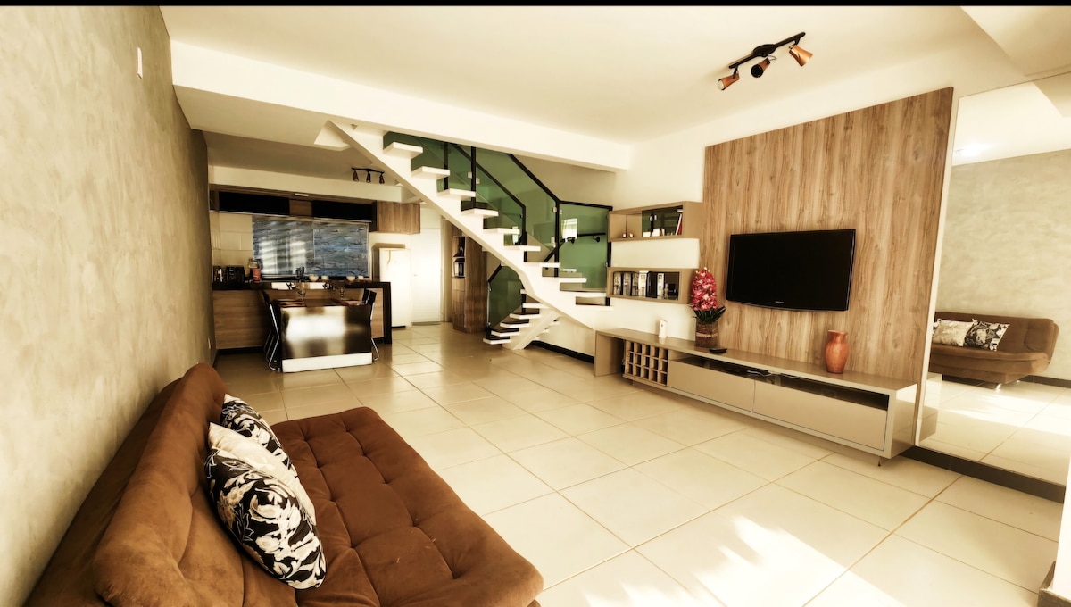 Seu Descanso počinje ovdje!! Uživajte i opustite se u nezaboravnim danima u ovom dvoetažnom stanu sa 2 apartmana, dnevnim boravkom, kuhinjom i toaletom. Udoban stan koji se nalazi u Escarpas do Lago, u zatvorenom kondominijumu sa 24-satnom kapijom. Nadamo se da će vaš boravak biti nevjerovatan, da ćete se osjećati kao kod kuće i uživati u svakom trenutku, opustiti se i napuniti baterije sa svakim detaljom osmišljenim u vašoj udobnosti i dobrobiti, što je velikodušan i prijatan prostor za vas.