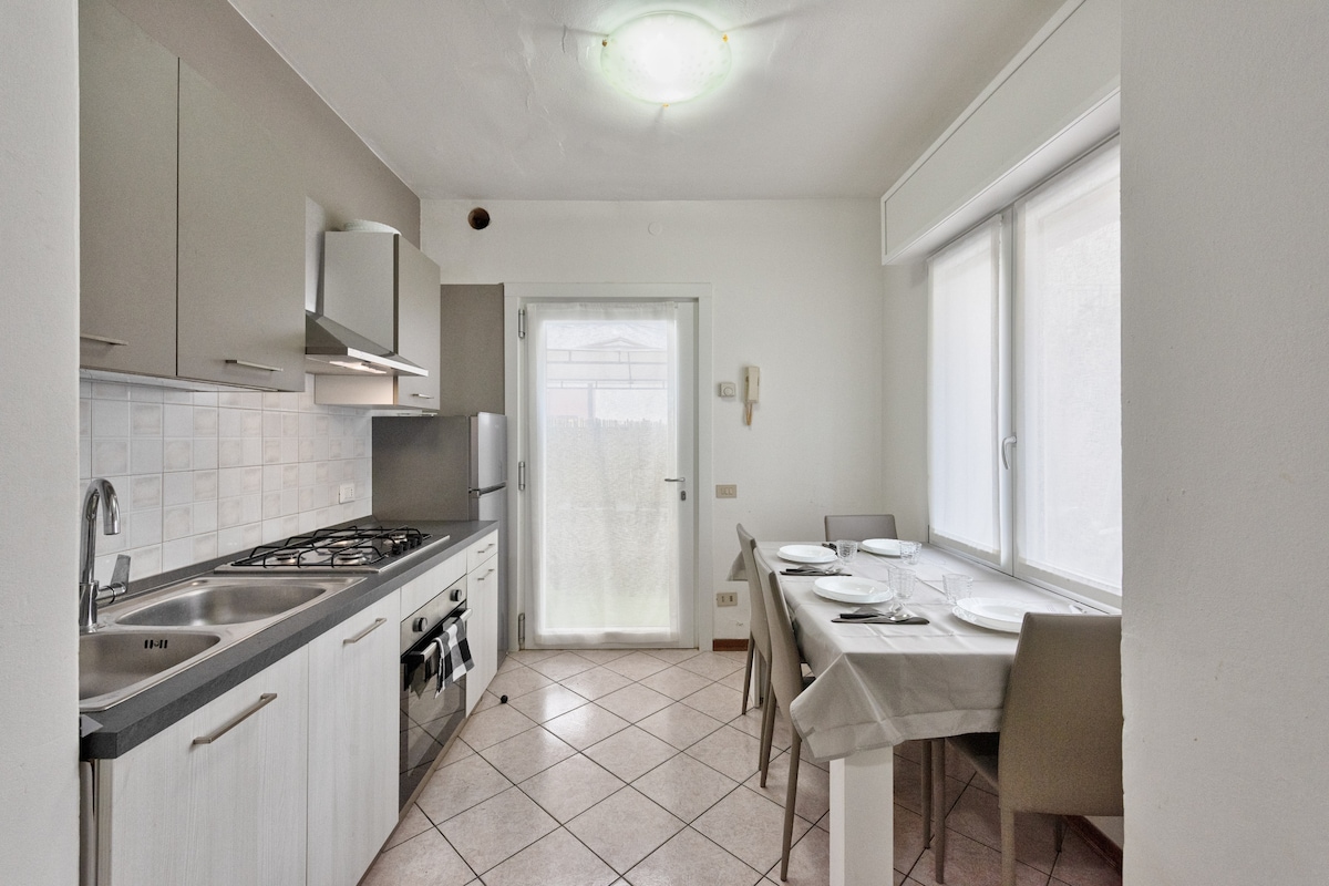prelijep stan na plaži u JESOLO LIDU, (60 m2) veoma velika terasa sa pogledom na more, visokokvalitetnim namještajem, potpuno opremljenim sadržajima za potpunu udobnost. U mom stanu je sve uključeno u cijenu, ležaljke za sunčanje na plaži i privatni parking uključeni, bez dodatnih troškova za plaćanje, puni sadržaji ! ... da ne pominjemo da se nalazi u fontu plaže na samo 30 metara. savršena kapija za ostrvo Venecija. WI-FI, klima uređaj, pametni TV UHD, 2 bicikla, sef, mašina za pranje veša, mikrotalasna pećnica.