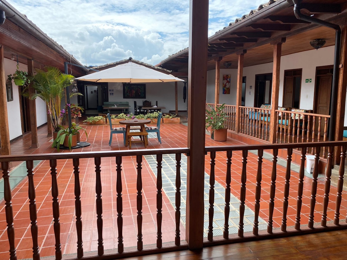 habitación Privada Tipo Colonial, consta de cama individual, baño privado con agua caliente, ventilador, televisor, closet, cobija extra, escritorio si lo requiere, desayuno tipo americano incluido en la tarifa.