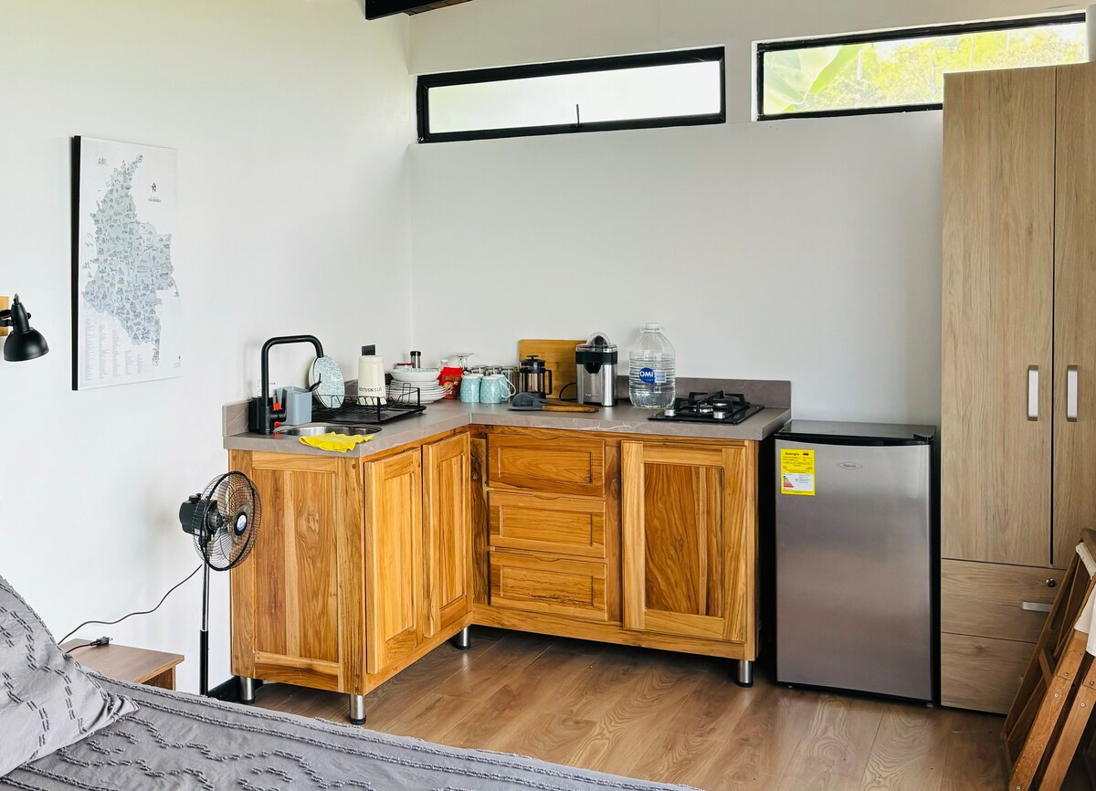Počastite se utočištem u La Gvadui, drvenoj brvnari bez komšija i s nenadmašnim pogledom koji je u potpunosti opremljen za udobne kratkoročne i dugoročne boravke - Brzi i stabilni Starlink internet - Potpuno opremljena kuhinja - 1 bračni krevet (160x200), 1 krevet za jednu osobu i 1 kauč na razvlačenje s vrhunskom posteljinom - Pogled koji oduzima dah - Džakuzi - Utočište za posmatranje ptica - Nalazi se u sklopu stočnog ranča na zatvorenom zemljištu u blizini Salamine, 3,5 sata vožnje od Medeljina - U blizini paraglajdinga La Merced i Kanjon de los Guacharos