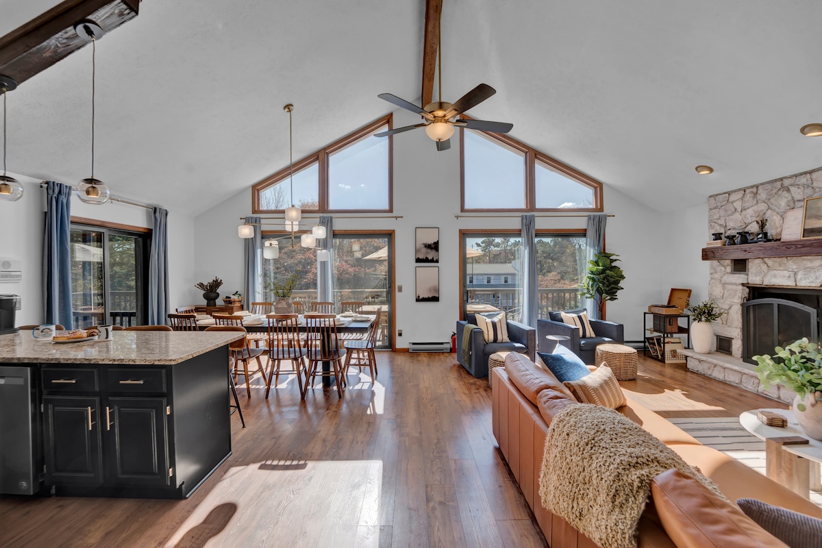 🔹 Top Amenities 🔹 🔹 Lake access (5-minute drive) 🔹 Hot tub & barrel sauna for ultimate relaxation 🔹 In-home movie theater with 85” Ultra HD TV & massage chairs 🔹 Custom cocktail bar + mini fridge 🔹 Shuffleboard, air hockey, dartboard & PS4 gaming loft 🔹 Spacious fire pit with Adirondack seating 🔹 7 bedrooms | 11 beds 🔹 Oversized dining table for 12 (plus additional seating for 6) 🔹 Fully stocked gourmet kitchen 🔹 AC & heat for year-round comfort