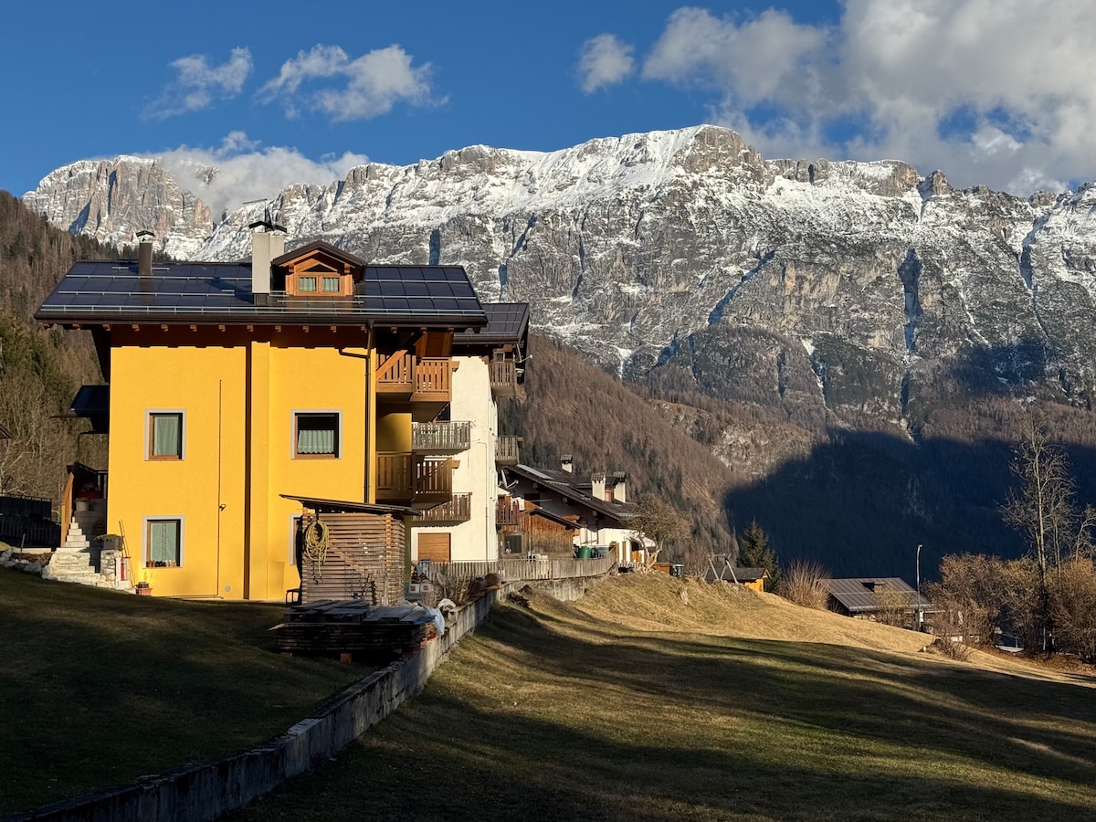Pogled na Pale di San Martino i snijeg kroz prozor. Planinski stan u prizemlju sa dva ulaza, dvije dvokrevetne spavaće sobe, potpuno opremljena kuhinja, kompletno kupatilo, privatna bašta, besplatan parking i spremište za skije. Mirna i tiha četvrt, savršena nakon dana provedenog na padinama. Direktan pogled na snježne Dolomite iz spavaćih soba. Samo 10 minuta od ski liftova Falcade – San Pellegrino, 28 km od Moene i 49 km od Kortine, grada domaćina Zimskih olimpijskih igara 2026. godine.