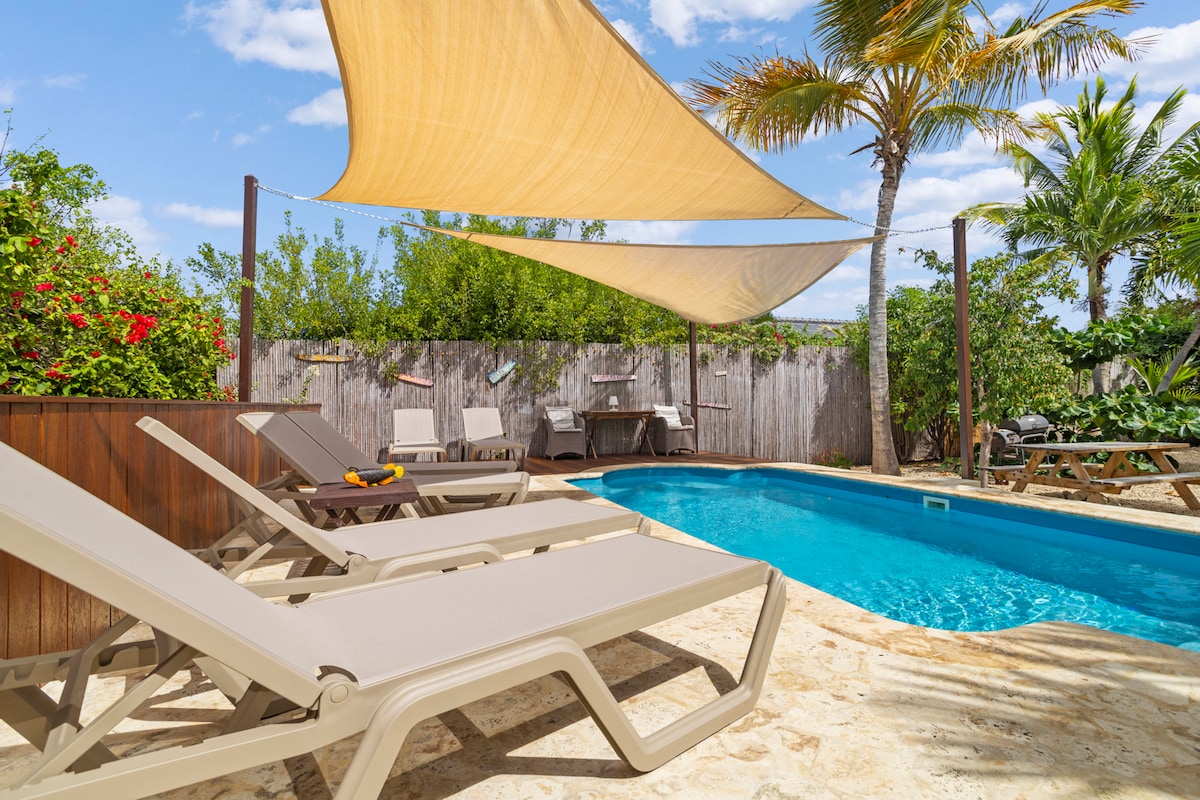 Ova luksuzna vila sa privatnim bazenom nalazi se u Plaji (centar Kralendijka) sa samo dva minuta hoda do okeana. Živahan, ali i dalje miran kraj. Srce Kralendijka možete stići za 15 minuta hoda. Obezbeđujemo potpuno opremljenu kuhinju i prostranu dnevnu sobu od 70 m2 sa svim vašim srcem. Na raspolaganju vam je natkrivena veranda u dvorištu sa direktnim pristupom privatnom bazenu sa ležaljkama za sunčanje.