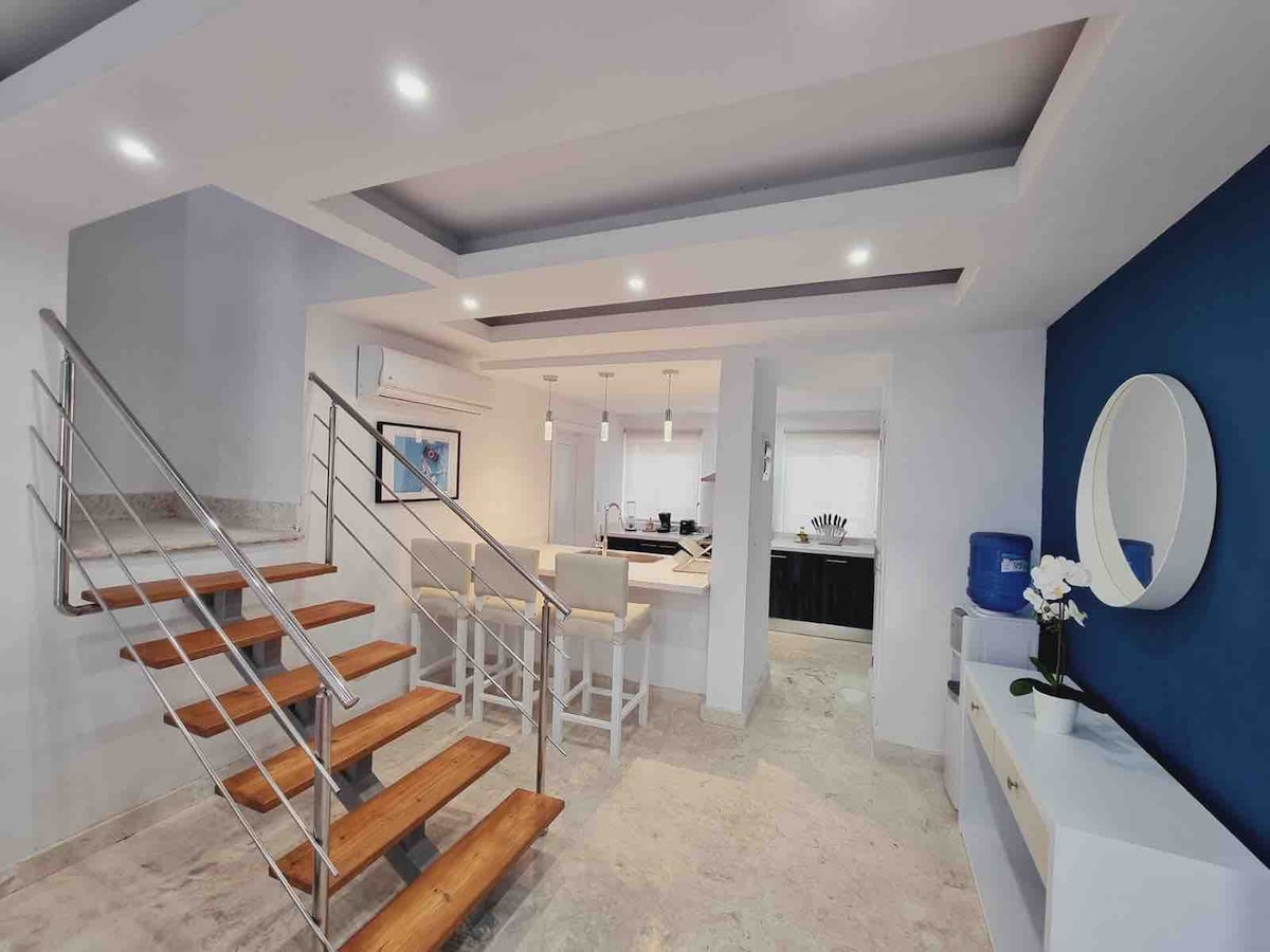 Penthaus sa sopstvenim privatnim bazenom koji se nalazi u centru grada, na obali okeana, na manje od minuta hoda od plaže sa belim peskom Punta Kana i više restorana, mini pijace i apoteke. Uživajte u svom privatnom bazenu pod mesečinom i zvukom okeana. Neverovatno je podeliti sa porodicom i prijateljima.