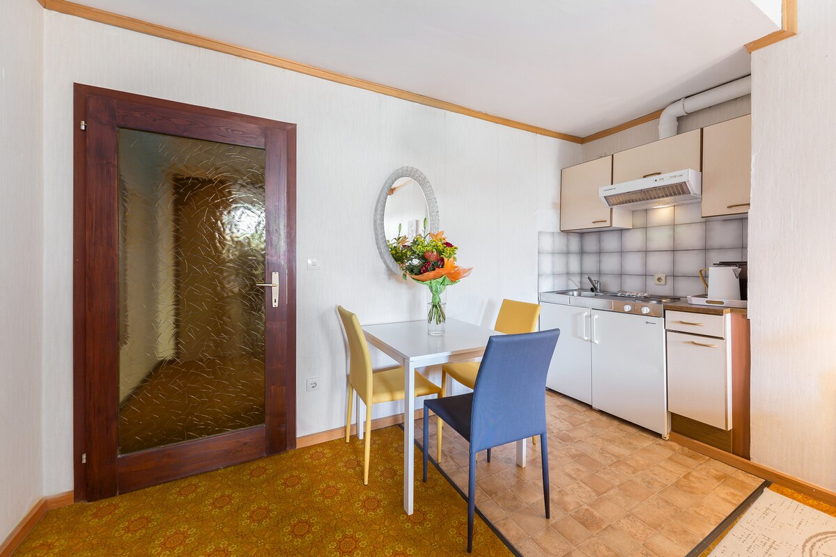 Apartman za odmor Gamskar: šarmantan i udoban Dozvolite da vas očara naš šarmantni studio od 25 m2 sa čajnom kuhinjom i malim prostorom za sedenje. U potpuno opremljenoj kuhinji možete da pripremite kulinarsku gozbu do mile volje. Naš hotel nudi ne samo udobnost, već i mir i opuštanje. Uživajte u balkonu sa mirnim pogledom na baštu. U svakom trenutku možete da rezervišete i naš ukusan doručak za one koji kasno ustaju.