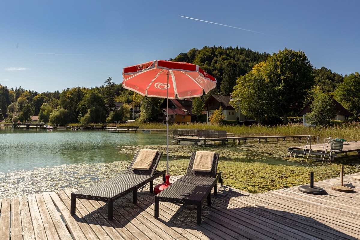 Savršena lokacija na jezeru i u Veldenu sa sopstvenom plažom Ni put, ni tunel između odmarališta i jezera , 1 spavaća soba (2-4 kreveta) prostor za sedenje, kuhinja. kupatilo/WC terasa za sunčanje ili balkon sa pogledom na jezero