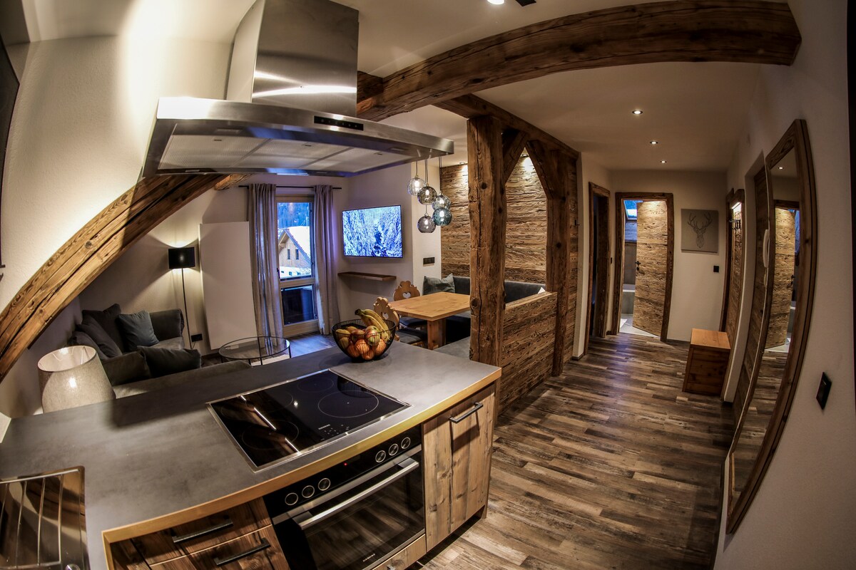 Haus Alpenglück, prvobitno izgrađen prije 180 godina kao seoska kuća. Danas je to porodična kuća sa samostalnim stanom za posjetioce. Novouređeni stan sa trpezarijom (i TV-om), kuhinjom, spavaćom sobom za najviše 4 osobe (2 odrasle osobe + 2 djece + krevetac za bebe na zahtjev) i tuš kabinom. Zajednička terasa i velika bašta. Besplatan parking i Wi-Fi u sklopu objekta. Napomena: boravišna taksa se plaća po odrasloj osobi starijoj od 16 godina. Ne može da primi kućne ljubimce.
