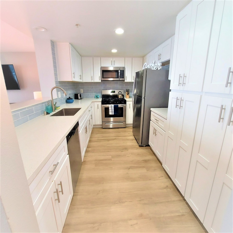 Uživajte u ovom besprijekorno preuređenom stanu u srcu Karlsbada. Potpuno preuređenje stvara lagan, svijetao, otvoren prostor. Ova jedinica je poželjna KRAJNJA jedinica. Niko nije iznad, ispod ili na jednoj strani!! Mirno i smirujuće. Oprema za plažu: daske za veslanje, torba za plažu, frižider, stolice za plažu, suncobran, peškiri Izađite na vrata i naći ćete se na samo jednu ulicu od jedne od najpoželjnijih plaža u Kaliforniji – šest milja dugog poteza bijelog pijeska sa dobro projektovanim šetalištem za šetnju ili trčanje.