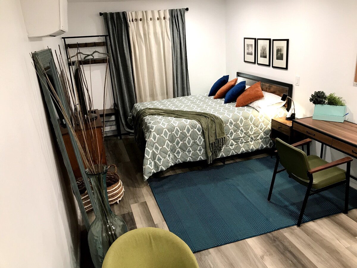 Boravite u srcu grada, urbanom centru Vilmingtona! Uživajte u elegantnom, udobnom stanu na drugom spratu, udaljenom nekoliko minuta od glavnih atrakcija, restorana i rijeke. Karakteristike uključuju opremljenu kuhinju, udobnu spavaću sobu, brzi Wi-Fi, pametni TV i prostor na balkonu. Jednostavan pristup ulici I-95 za putovanja u Filadelfiju, Baltimor i plaže. Savršeno za poslovna putovanja ili razonodu!