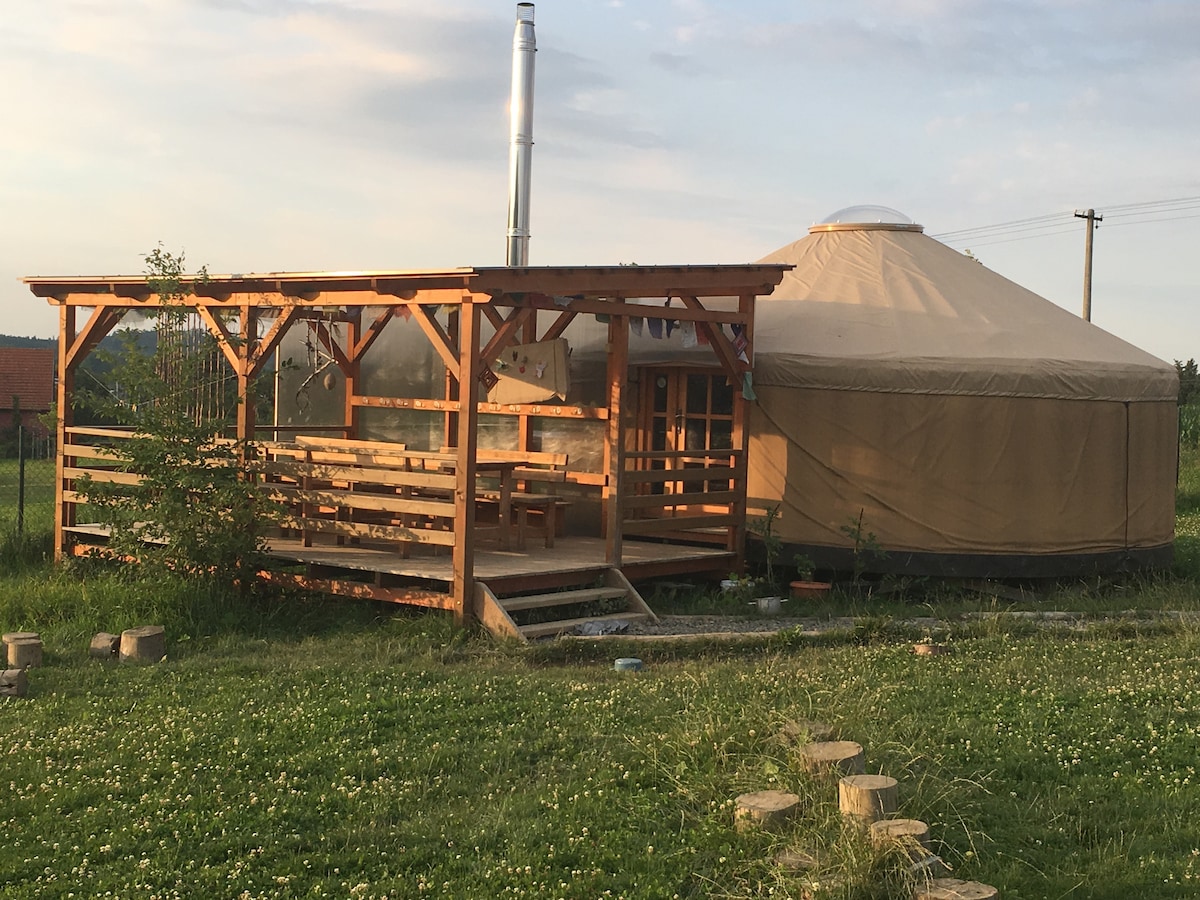 Nekonvencionalan smještaj, savršen za porodice s djecom. 2 jurte – uključujući potpuno opremljenu kuhinju. Jedan za 8 osoba, drugi za 4 osobe. Posvećeni smo ekološkoj održivosti, pa su toaleti kompostabilni, a tuš je tuš sa kofom (zaprepastiće vas koliko se divno možete tuširati u kofi tople vode). Tu je velika bašta. U bašti imamo ognjište sa prostorom za sedenje, kutiju sa peskom, ljuljaške, senicu i kolibe od vrbe. Ispred jurti se nalazi parking za 7 automobila. Gosti moraju da ponesu sopstvene vreće za spavanje; odrasli moraju da ponesu sopstvene prostirke za spavanje.