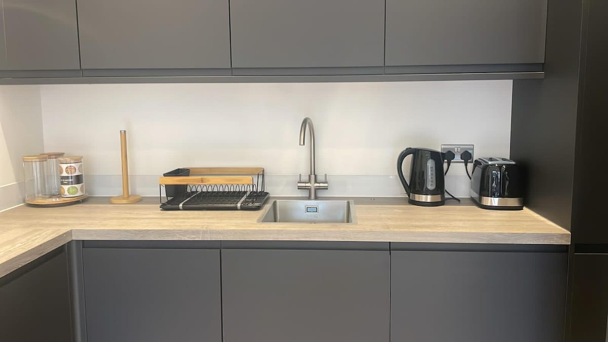Naši prostori su osmišljeni isključivo za korišćenje naših gostiju, a ne zbog iznajmljivanja smještaja koji je iznajmljen dok su odsutni. Ni mi ih ne smatramo apartmanima sa dodatnim uslugama, a mi se trudimo da stvorimo prostore u kojima ćete se osećati kao kod kuće od trenutka kada uđete kroz vrata. Ne sečemo uglova i dosledno ulažemo u naše objekte kako bismo stvorili okruženje u kojem bismo želeli da živimo u sebi. Naplaćuje se malo više, ali sve što vam je potrebno za pokretanje stana je u ceni, bilo da se radi o toileteri u kupatilu, tablete za mašinsko pranje sudova i sve što vam je potrebno za sve uređaje, pa čak i kućne ogrtače i fene za kosu. Frižider snabdevamo osnovnim potrepštinama jer znamo da je poslednja stvar koju želite da uradite nakon dugog putovanja da morate da otputujete u supermarket da biste kupili tu kriglu mleka. Želimo lično da dočekamo naše goste po dolasku, ali ako želite da prijava može biti jednostavna kao i ukucajte šifru u sef za ključeve ispred ulaznih vrata, a na odlasku jednostavno ostavite ključeve na stolu i zatvorite vrata za sobom. Nema više zabrinutosti da čekate na recepciji jer neko odlazi u vašu sobu da pregleda ono što ste rekli da ste imali iz minibara. Naš cilj je da olakšamo kombinovanje udobnosti doma iz sopstvenog doma sa pažnjom na detalje hotela. Veoma smo zahvalni gostima koji su nam dali tako ljubazne komentare i nadamo se da ćemo vam ubuduće poželjeti dobrodošlicu u Epsomu. U suštini, to je vaš dom tokom boravka kod nas. Imate ključeve. Dostupan vam je ceo stan. Niko se neće pojaviti neočekivano. Imamo osiguran parking napolju. Možemo da pružimo dodatne usluge, kao što su čišćenje, posteljina i promena posteljine uz malu dodatnu naknadu na zahtev, a uz najavu unapred možemo da vam pružimo posebne detalje prilikom dolaska za te važne ili romantične prilike. U kratkom roku smo vam na raspolaganju za sve probleme s kojima se gosti mogu suočiti, mada ćemo vas ostaviti na vašim uređajima. Za boravke od 7 ili više dana nudimo najmanje jedno čišćenje, a posteljina se menja nedelju dana. Stan se nalazi u centru grada, tako da je sve dostupno odmah ispred vrata. Glavni restorani i prodavnice udaljeni su pet minuta hoda i blizu stanice. Lokacija ne može biti bolja ili praktičnija. Imamo osiguran privatni parking i možemo da smestimo 1 automobil po stanu. U blizini su i druge mogućnosti za parkiranje, od kojih je Ešli centar udaljen 5 minuta hoda. Stanica je udaljena oko 300 metara. Uber je prilično dobar i obično stiže za manje od 10 minuta. Najbolja lokalna taksi firma u našem pogledu je Clocktower Cars koji se nalazi u našem kućnom priručniku.
