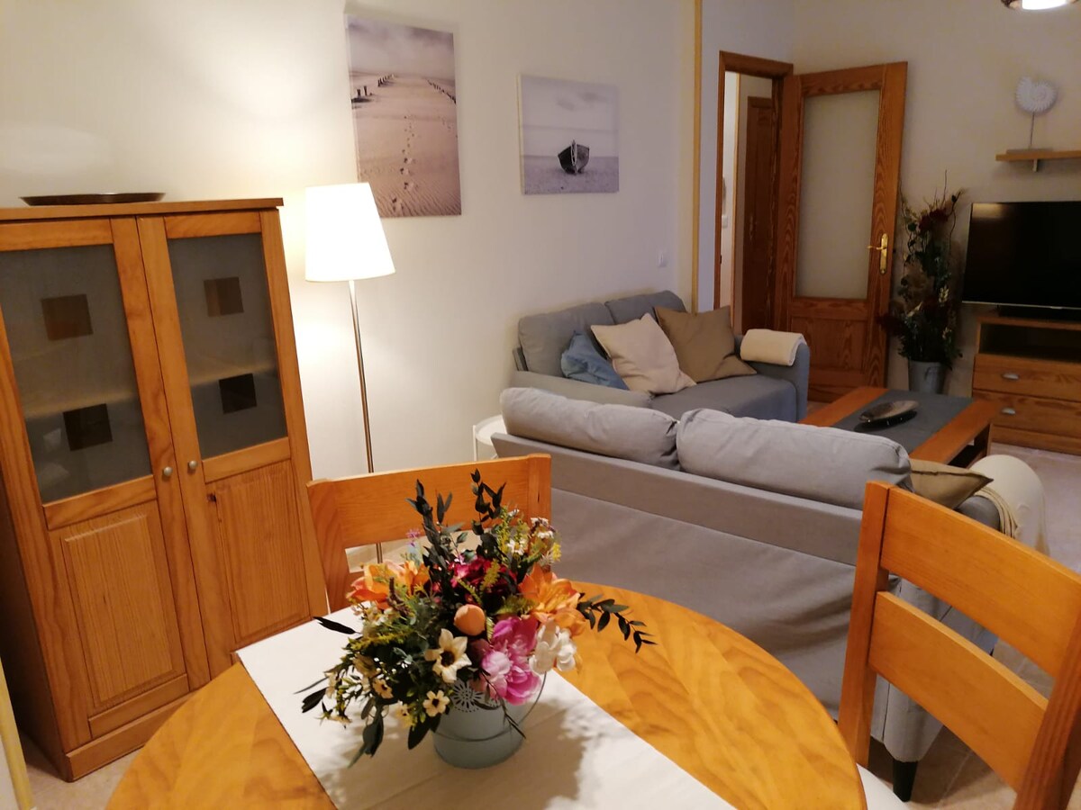 Uređenje u nordijskom stilu, sa detaljima tirkiznog i žutog dodira koji podsjećaju na primorski grad. Oni su 75 m2 dobro raspoređeni u dnevnoj sobi sa 2 balkona na Calle 4 Santos i kauč na razvlačenje po potrebi, spavaća soba sa bračnim krevetom i druga spavaća soba sa 2 kreveta za jednu osobu. Kuhinja opremljena rernom, mikrotalasnom rernom, pločom za kuvanje, frižiderom, aspiratorom i mašinom za pranje veša. WC šolja sa velikim tušem Kuća ima klima-uređaj i centralno grijanje.