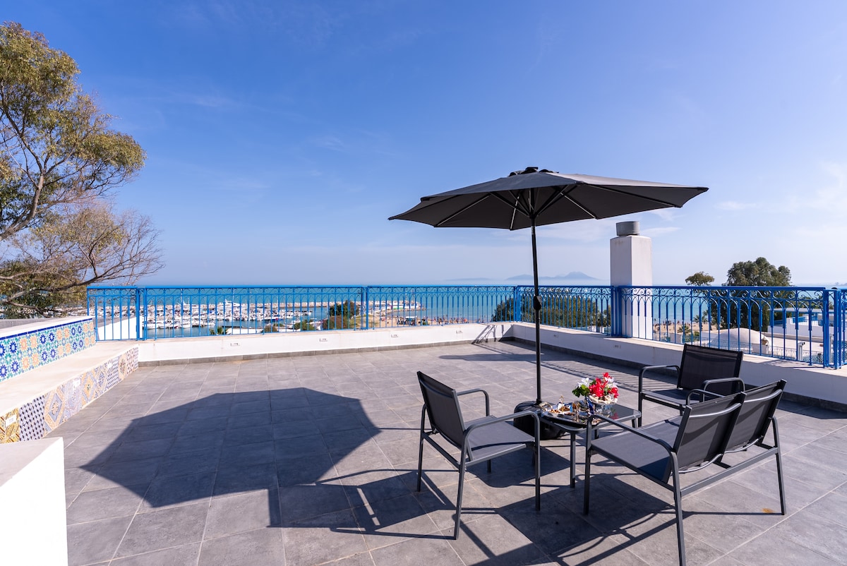 Profitez d'un logement élégant et central, en plein cœur de Sidi Bou Said. Idéal pour des séjours en famille ou entre amis , a côté de toutes les commodités , en bas du village historique. Un grand appartement, étage de villa indépendant très joliment décoré et tres bien équipée. Vous pourrez également profiter de sa grande terrasse avec une magnifique vue lors de belles soirées d’été