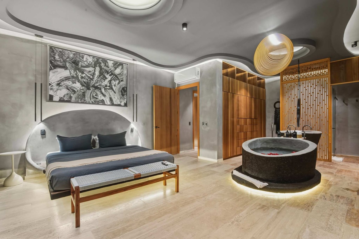 Ovaj prelijepi penthaus koji se nalazi među 5 najboljih smještaja u Tulumu za dizajn i udobnost, spaja prirodne teksture sa nevjerovatnim pogledom na džunglu od 180°. Veliki životni prostori besprekorno se miješaju s pogledom na džunglu, stvarajući mirnu i očaravajuću atmosferu. Uz mnogo pažnje uloženog u detalje, ovaj poseban penthaus je savršena mješavina otmjenih, prirodnih ljepota, luksuza i opuštanja. Nudi usluge konsijerža, privatnog kuvara, prevoz i sve što je potrebno za uživanje u vrhunskom iskustvu putovanja.