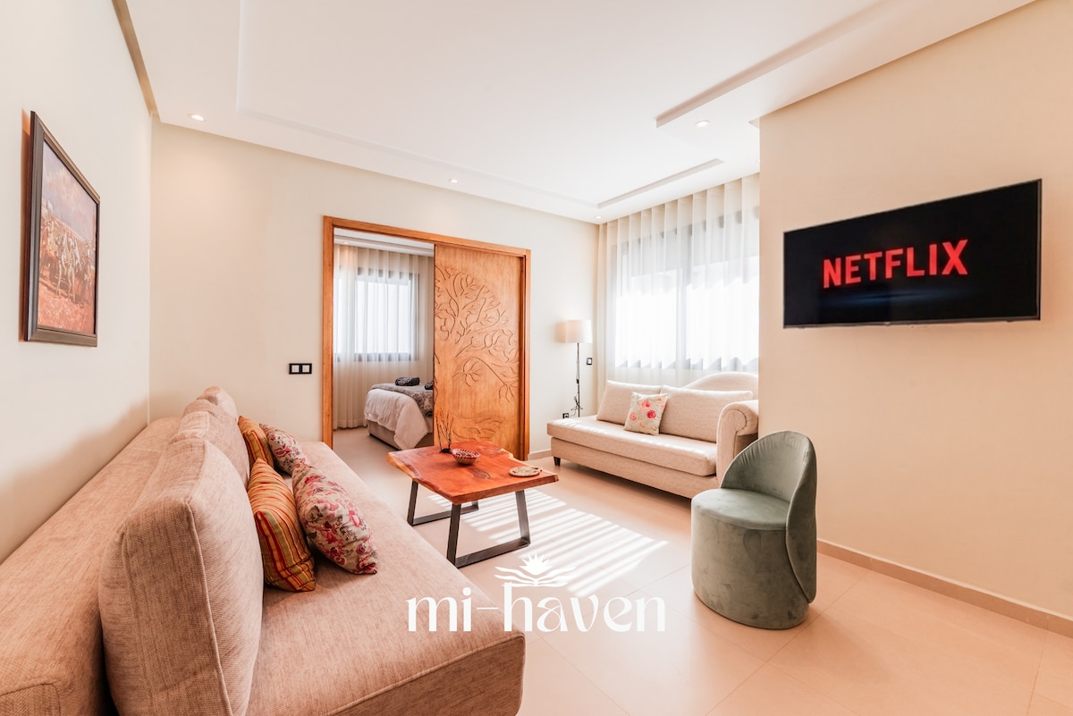 Otkrijte studio Urbania, moderan, elegantan i savršeno smješten prostor u srcu Maârifa, jedne od najtraženijih četvrti Kazablanke. Idealan za goste koji traže udobnost i praktičnost, uključuje svijetlu dnevnu sobu, udobnu spavaću sobu, opremljenu kuhinju (rerna, toster, aparat za kafu) i moderno kupatilo. Obezbijedite brzi Wi-Fi, mogućnost samostalnog pristupa non-stop i besplatan parking. Sve je osmišljeno da vam boravak bude prijatan i bez ograničenja.