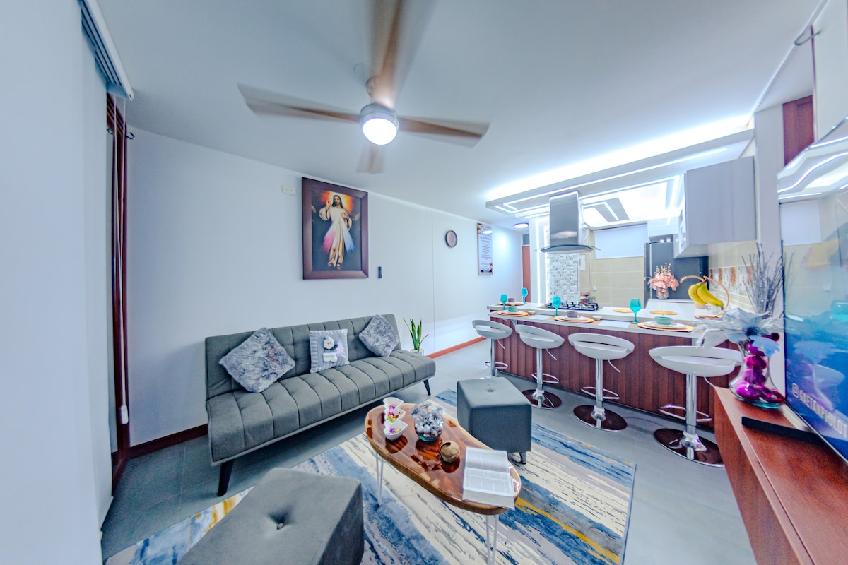 Bienvenidos House24 en Yopal! Ovaj spektakularni dvosobni stan se nalazi na 3. spratu apartahotela, dizajniran je i opremljen da vam pruži udoban i prijatan boravak tokom posjete gradu, bilo za pojedinačna ili grupna putovanja. Ovdje ćete pronaći sobe sa Smartv TV-om od 40" i 50", udobne krevete, prostrano kupatilo sa prostorom za odjeću opremljenim peglom i mašinom za pranje i sušenje veša, prostrani dnevni boravak i kuhinju sa svime što vam je potrebno za pripremu hrane.