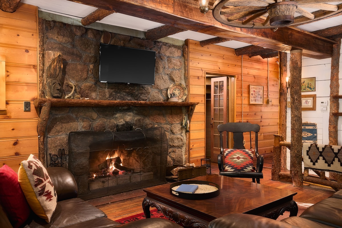 Ova jugozapadna boho brvnara je ušuškana među drvećem u istorijskom, mirnom kraju u podnožju čuvenog Pajks Pika. Sa obiljem prednje terase, prozorima od poda do plafona i privatnim, ograđenim dvorištem sa hidromasažnom kadom, plinskim ognjištem i drugim popravkama koje vas čekaju pri dolasku, brvnara ima divan pogled na šumu i planine dok je u roku od 10 minuta od kulture i pogodnosti u Manitu i Kolorado Springsu. Mjesto za romantični odmor, porodičnu zabavu ili radni odmor!